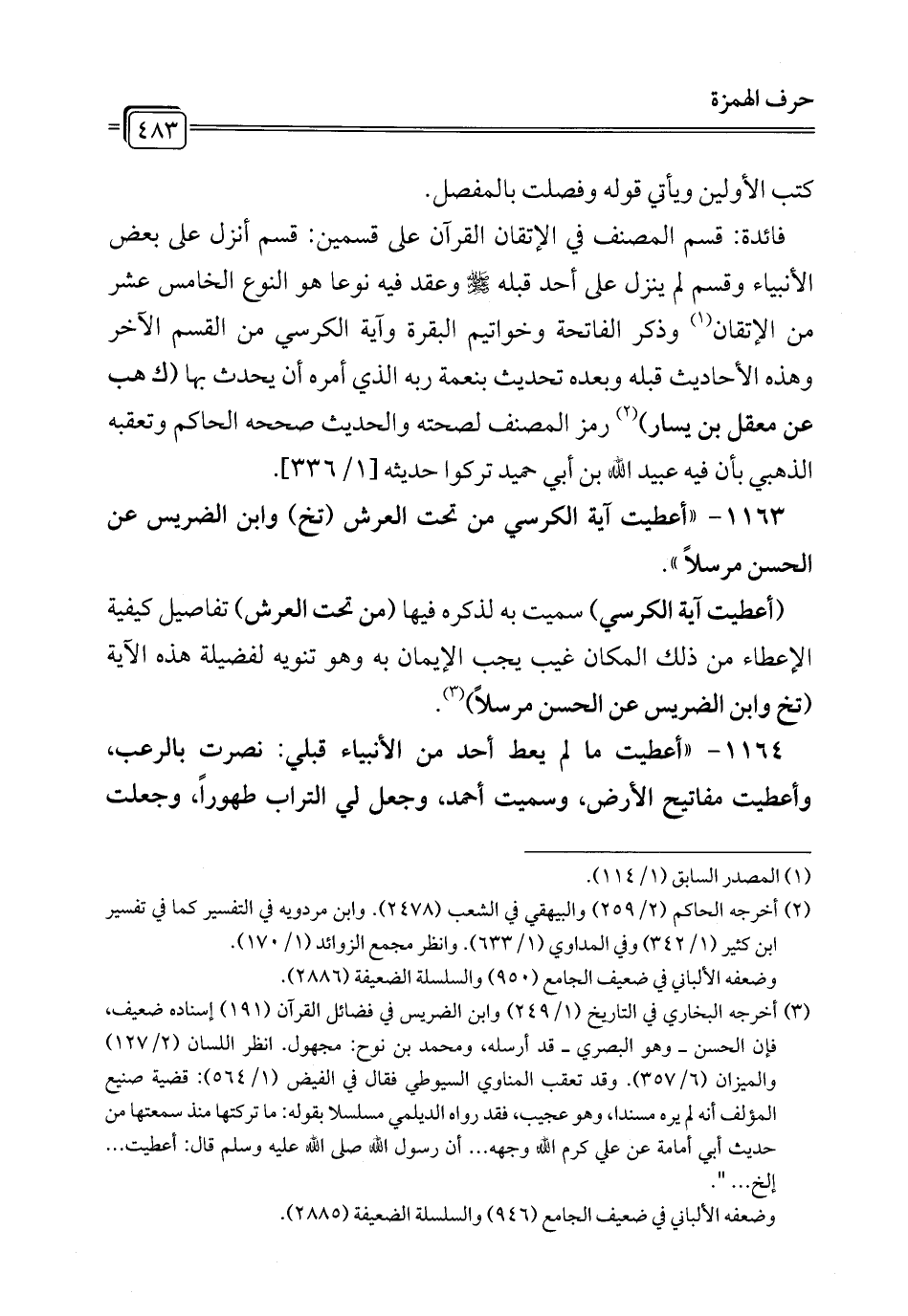 1163 - "أعطيت آية الكرسي من تحت العرش (تخ) وابن الضريس عن الحسن مرسلاً".