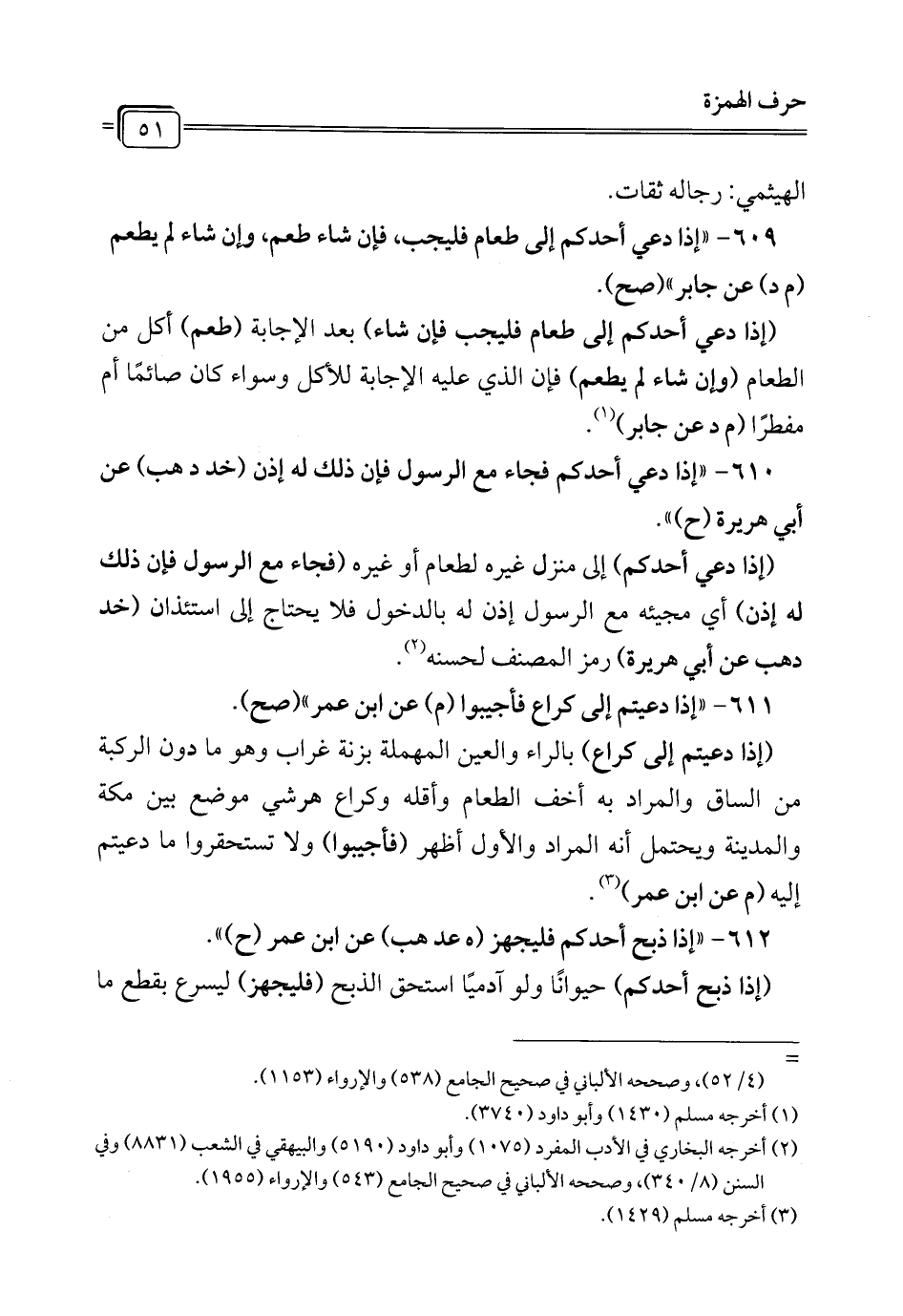 611 - " إذا دعيتم إلى كراع فأجيبوا (م) عن ابن عمر" (صح).