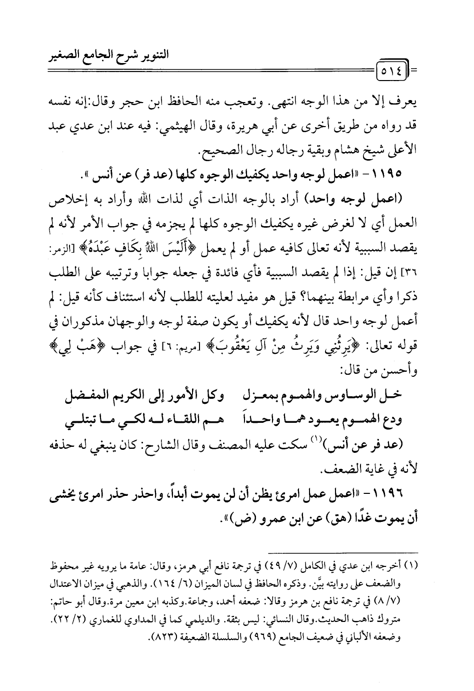 1195 - "اعمل لوجه واحد يكفيك الوجوه كلها (عد فر) عن أنس".