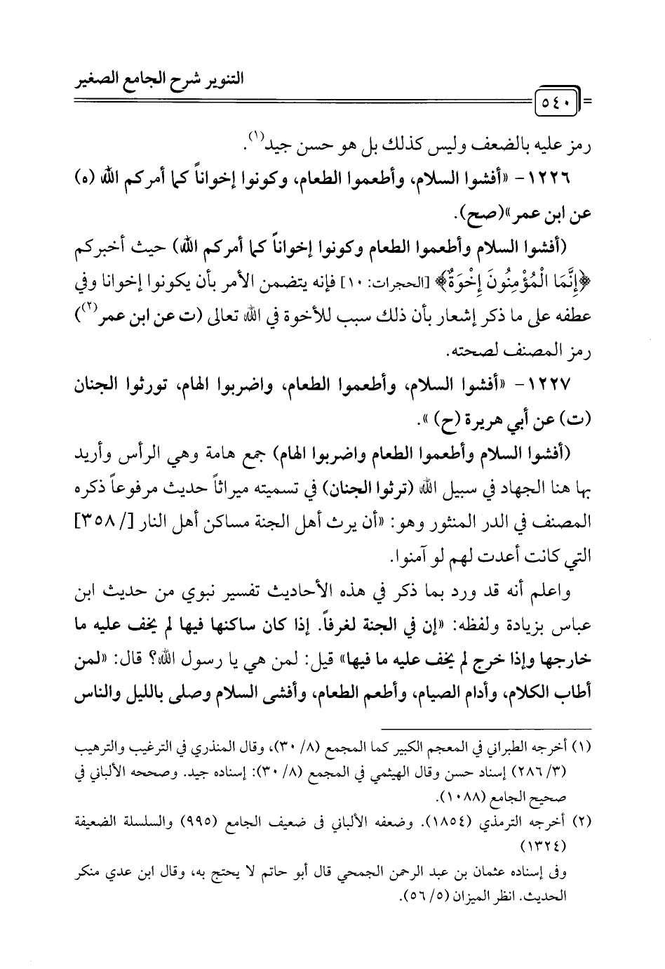 1226 - "أفشوا السلام، وأطعموا الطعام، وكونوا إخوانًا كما أمركم الله (هـ) عن ابن عمر" (صح).
