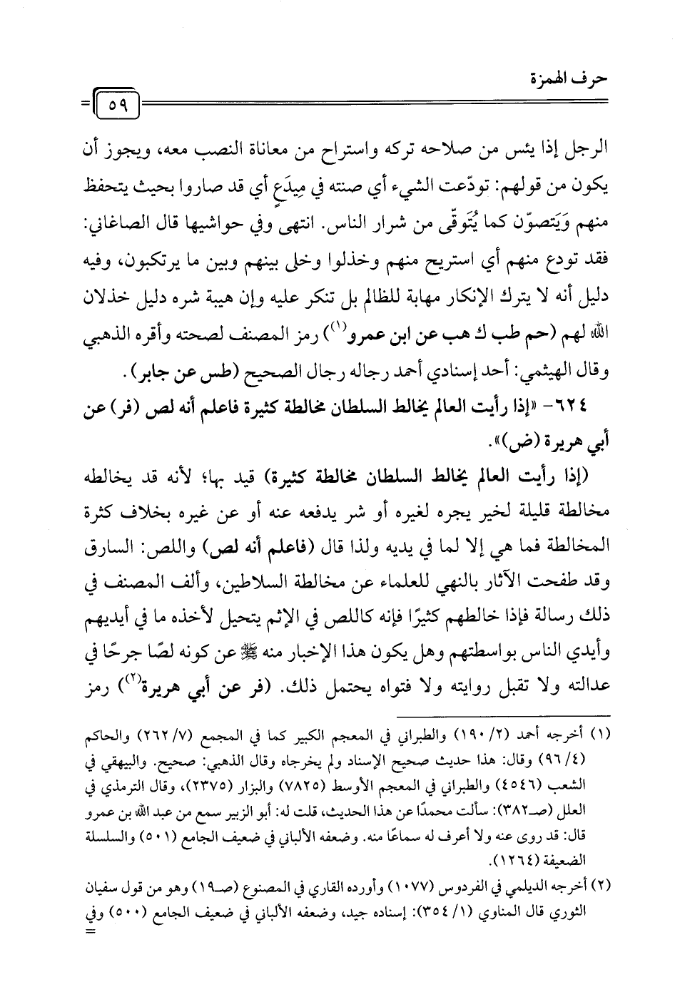 624 - " إذا رأيت العالم يخالط السلطان مخالطة كثيرة فاعلم أنه لص (فر) عن أبي هريرة (ض) ".