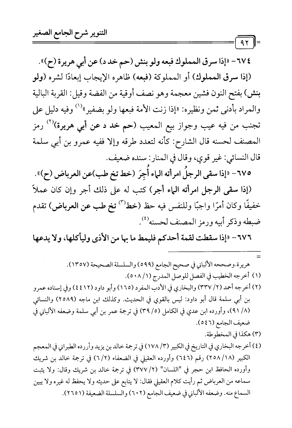 674 - " إذا سرق المملوك فبعه ولو بنش (حم خد د) عن أبي هريرة (ح) ".