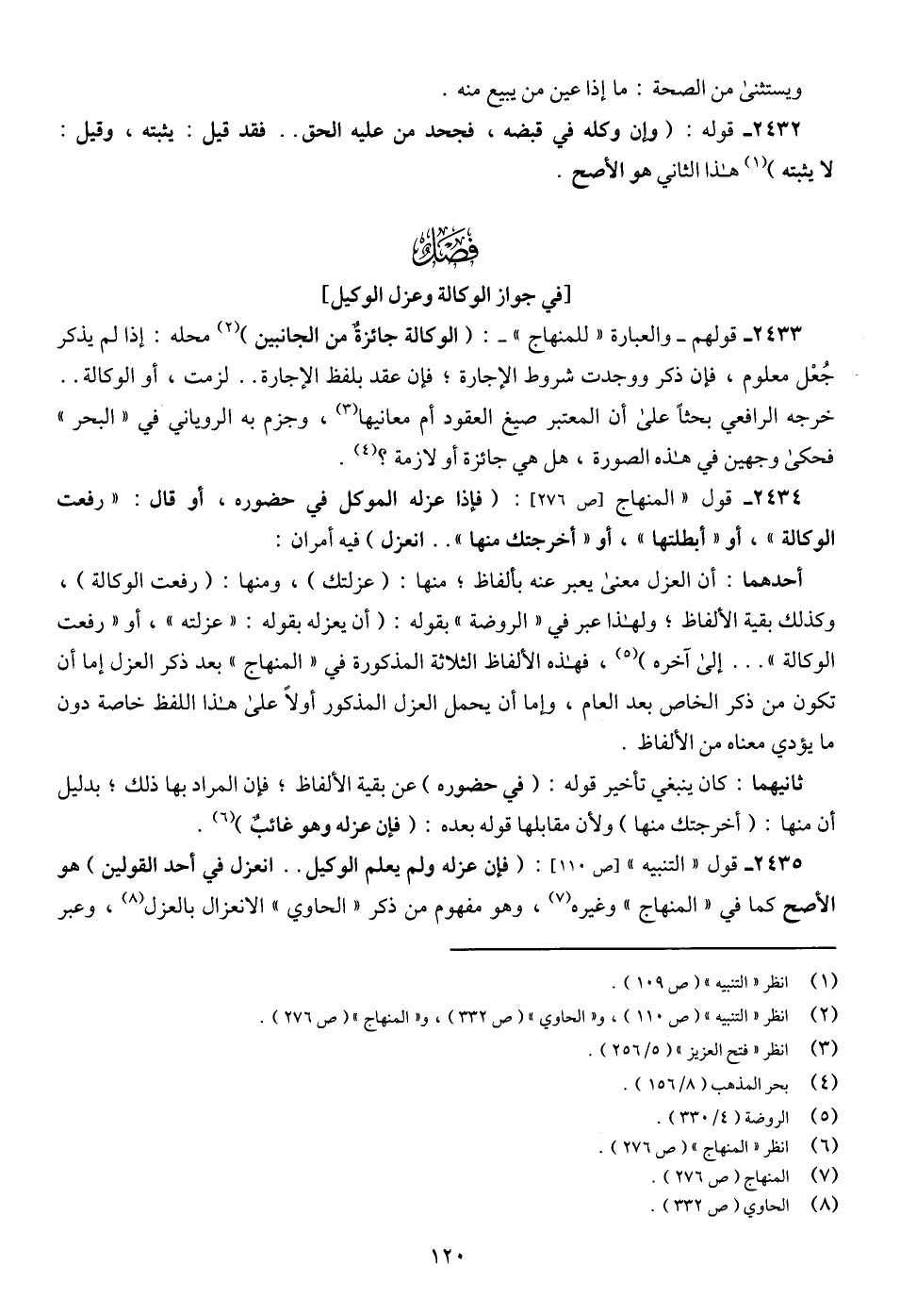 2435 - قول "التنبيه" [ص 110]: (فإن عزله ولم يعلم الوكيل .. انعزل في أحد القولين) هو الأصح كما في "المنهاج" وغيره (¬7)، وهو مفهوم من ذكر "الحاوي" الانعزال بالعزل (¬8)، وعبر