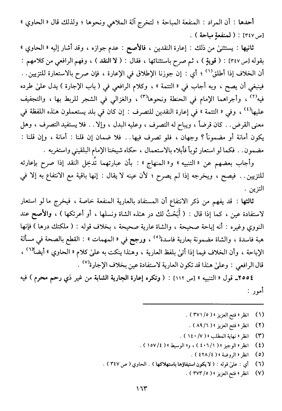 وأجاب بعضهم عن "التنبيه" و"المنهاج": بأن عبارتهما تُدخِل النقد إذا صرح بإعارته للتزيين .. فيصح، ويخرجه إذا لم يصرح؛ لأن عينه لا يقال: إنها باقية مع الانتفاع به إلا في التزين.