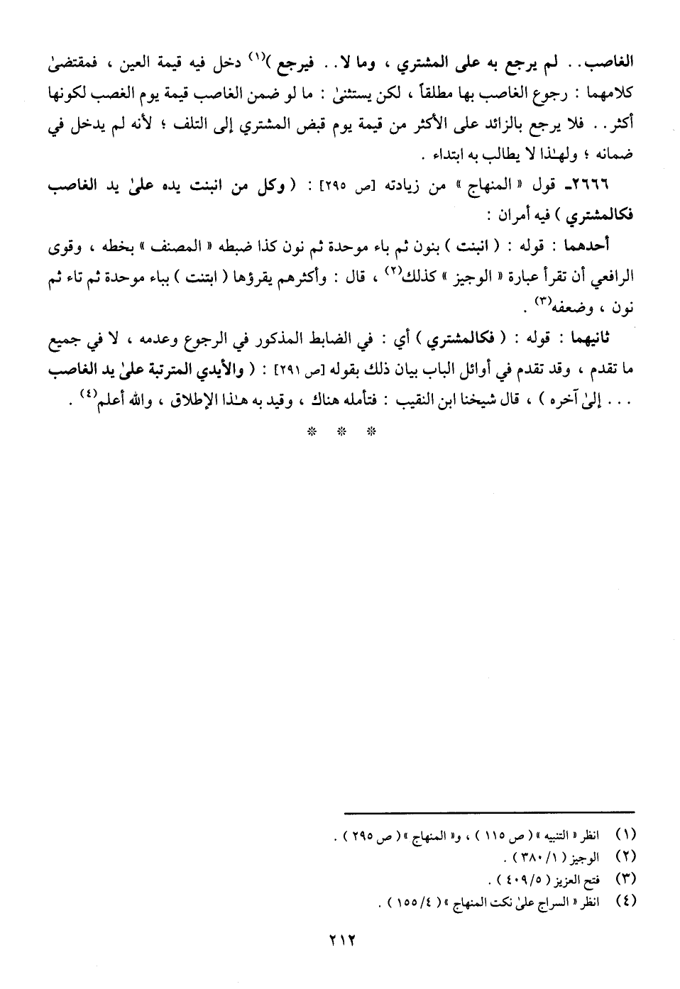 2666 - قول "المنهاج" من زيادته [ص 295]: (وكل من انبنت يده على يد الغاصب فكالمشتري) فيه أمران: