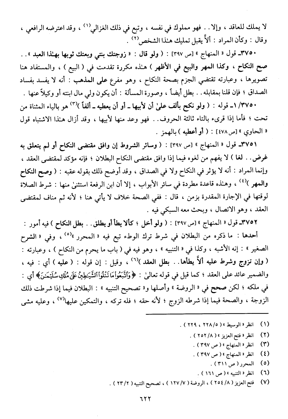 3751 - قول "المنهاج" [ص 397]: (وسائر الشروط إن وافق مقتضى النكاح أو لم يتعلق به غرض .. لغا) لا يفهم من لغوه فيما إذا وافق مقتضى النكاح البطلان؛ فإنه مؤكد لمقتضى العقد، وإنما المراد: أنه لا يؤثر في النكاح ولا في الصداق، وقد أوضح ذلك بقوله عقبه: (وصح النكاح والمهر) (¬4)، وهذه قاعدة مطردة في سائر الأبواب، إلا أن ابن الرفعة استثنى منها: شرط الصلاة لوقتها في الإجارة المقدرة بزمن، قال: ففي الصحة خلاف لا يأتي هنا؛ لأنه ثم مناف لمقتضى العقد، وهو الاتصال، وبحث معه السبكي فيه.
