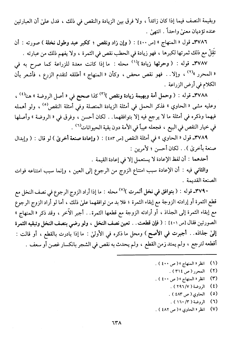 3786 - قول "المنهاج" [ص 400]: (وإن زاد ونقص؛ ككبر عبد وطول نخلة) صورته: أن تَقِلّ مع ذلك ثمرتها لكبرها، فهو زيادة في الحطب نقص في الثمرة، ولا يفهم ذلك من عبارته.