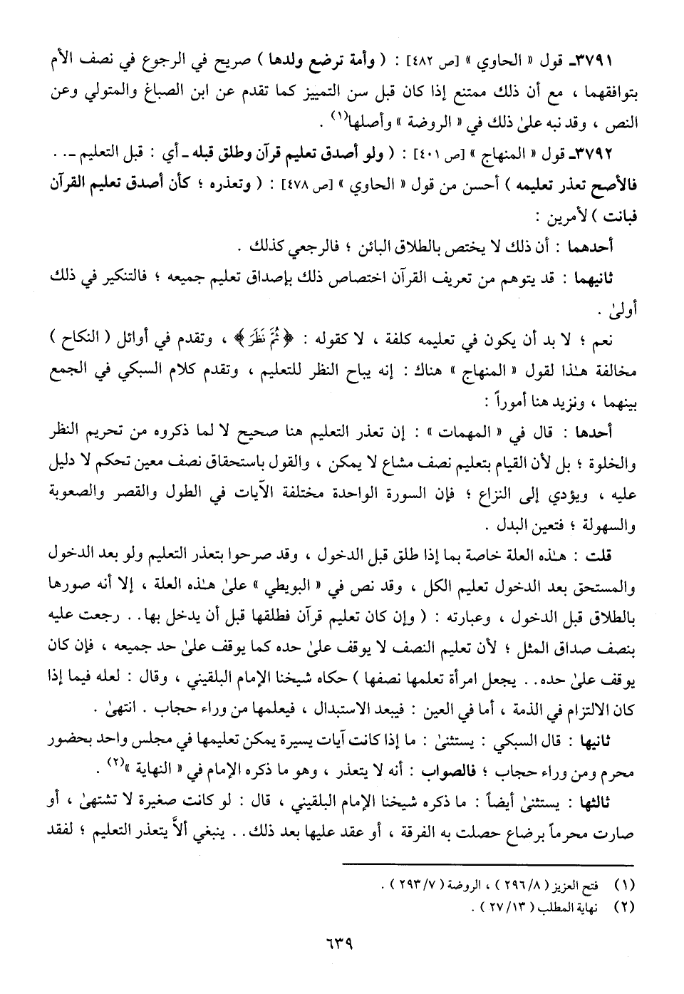 3792 - قول "المنهاج" [ص 401]: (ولو أصدق تعليم قرآن وطلق قبله - أي: قبل التعليم - .. فالأصح تعذر تعليمه) أحسن من قول "الحاوي" [ص 478]: (وتعذره؛ كأن أصدق تعليم القرآن فبانت) لأمرين: