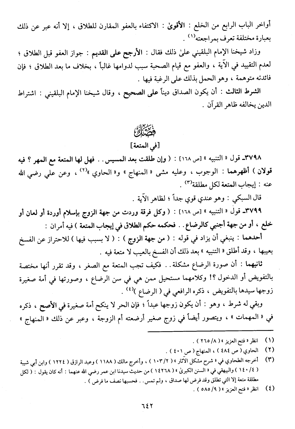 3798 - قول "التنبيه" [ص 168]: (وإن طلقت بعد المسيس .. فهل لها المتعة مع المهر؟ فيه قولان) أظهرهما: الوجوب، وعليه مشى "المنهاج" و"الحاوي" (¬2)، وعن علي رضي الله عنه: إيجاب المتعة لكل مطلقة (¬3).