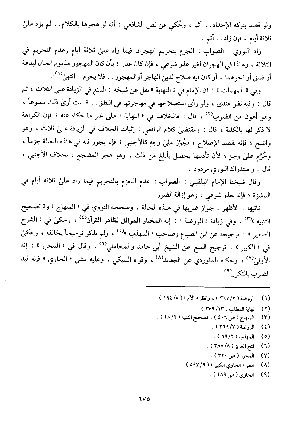 وقال شيخنا الإمام البلقيني: الصواب: عدم الجزم بالتحريم فيما زاد على ثلاثة أيام في الناشزة؛ فإنه لعذر شرعي، وهو إزالة الضرر.
