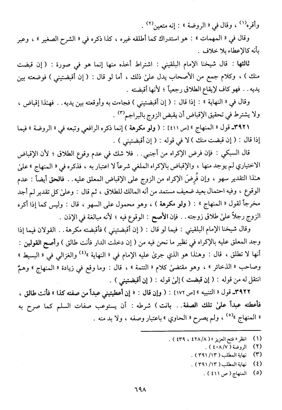 3921 - قول " المنهاج " [ص 411]: (ولو مكرهة) إنما ذكره الرافعي وتبعه في " الروضة " فيما إذا قال: (إن قبضت منك) لا في قوله: (إن أقبضتيني).