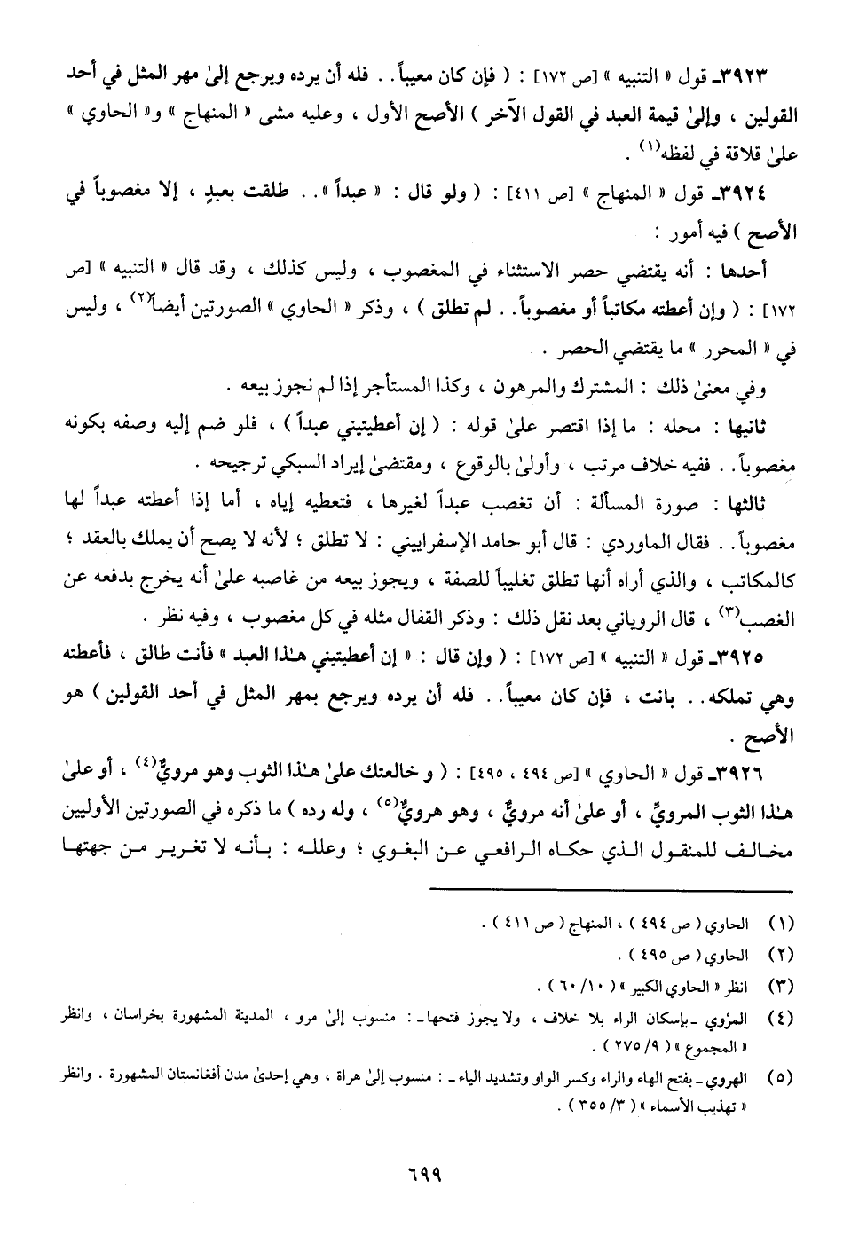 (¬4) المرْوي - بإسكان الراء بلا خلاف، ولا يجوز فتحها -: منسوب إلى مرو، المدينة المشهورة بخراسان، وانظر " المجموع " (9/ 275).