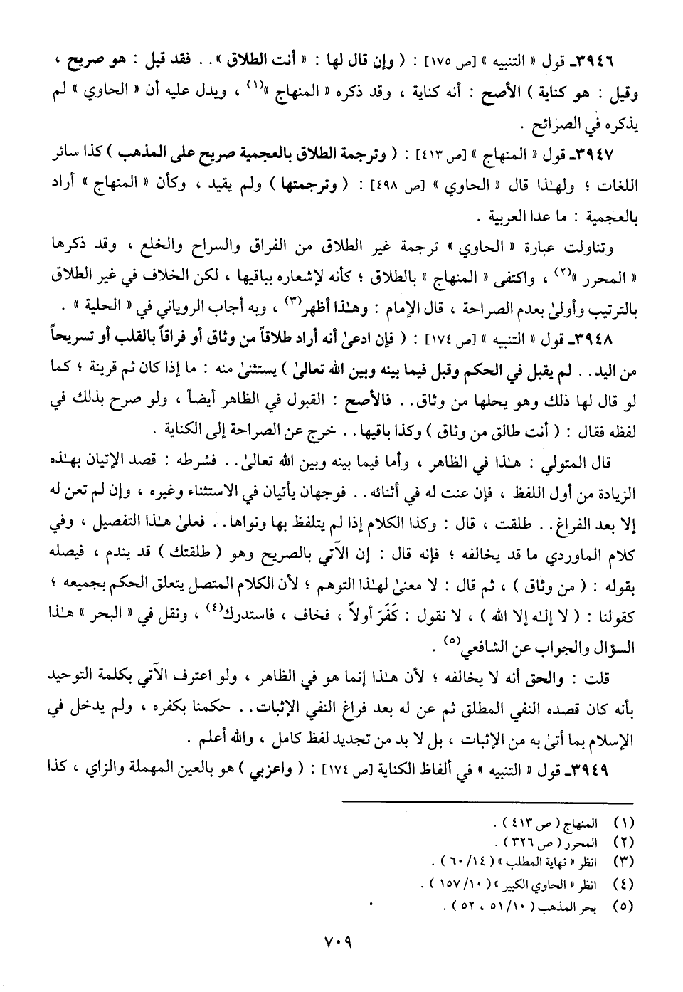3947 - قول " المنهاج " [ص 413]: (وترجمة الطلاق بالعجمية صريح على المذهب) كذا سائر اللغات؛ ولهذا قال " الحاوي " [ص 498]: (وترجمتها) ولم يقيد، وكأن " المنهاج " أراد بالعجمية: ما عدا العربية.