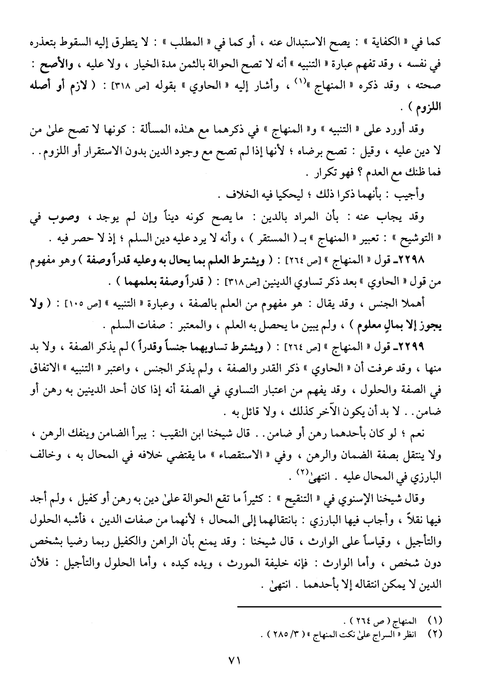 2298 - قول " المنهاج " [ص 264]: (ويشترط العلم بما يحال به وعليه قدرًا وصفة) وهو مفهوم من قول " الحاوي " بعد ذكر تساوي الدينين [ص 318]: (قدرًا وصفة بعلمهما).