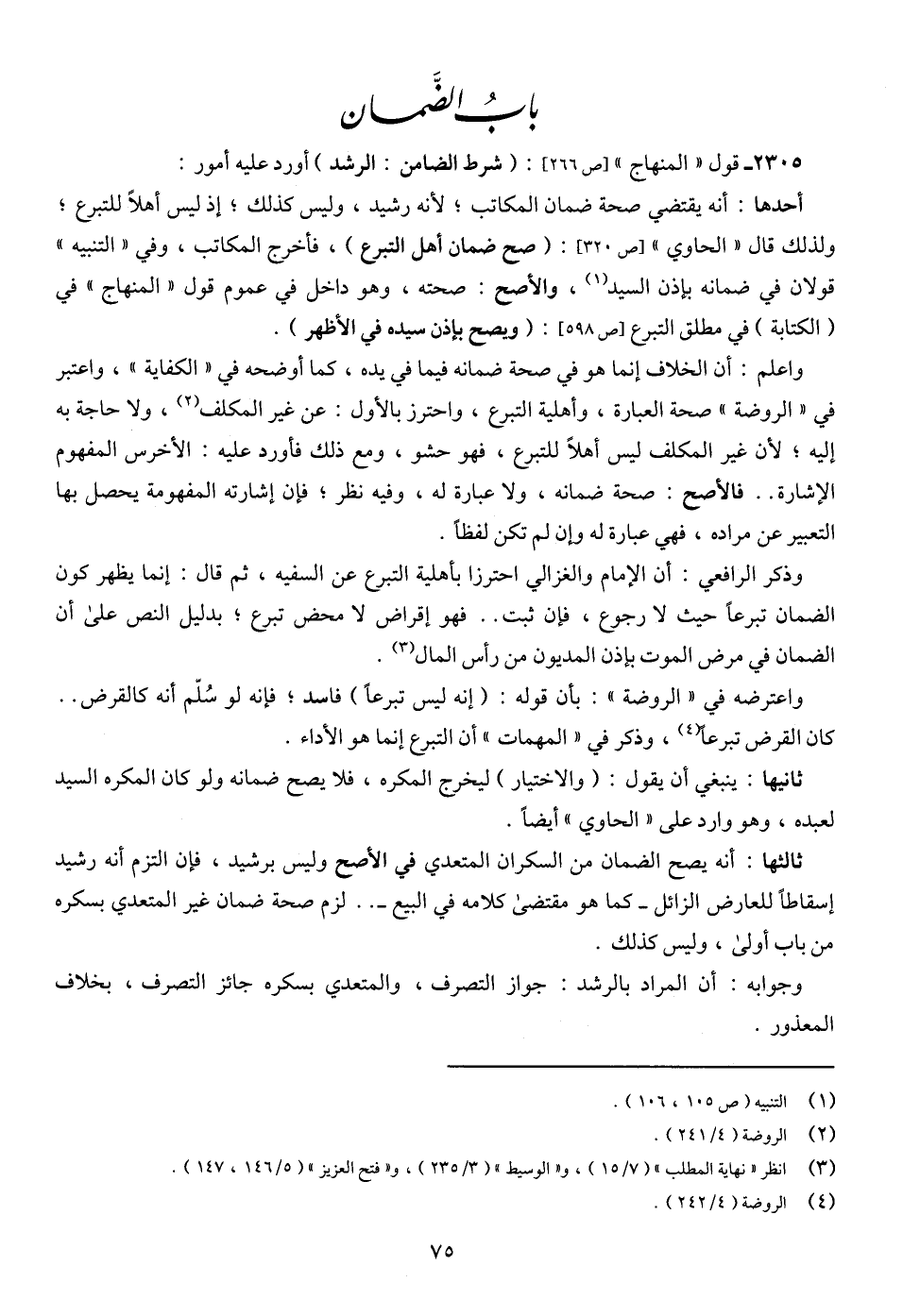 2305 - قول " المنهاج " [ص 266]: (شرط الضامن: الرشد) أورد عليه أمور: