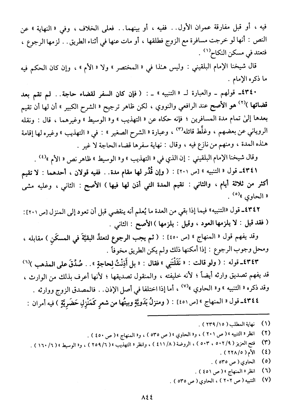 4342 - قول "التنبيه" فيما إذا بقي من العدة ما يُعلم أنه ينقضي قبل أن تعود إلى المنزل [ص 201]: (فقد قيل: لا يلزمها العود، وقيل: يلزمها) الأصح: الثاني.