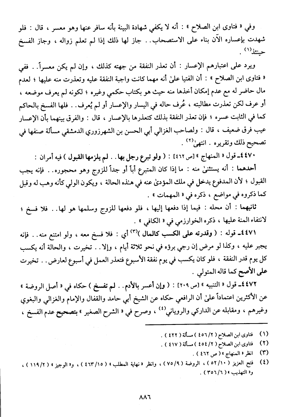 4472 - قول "التنبيه" [ص 209]: (وإن أعسر بالأدم .. لم تفسخ) حكاه في "أصل الروضة" عن اعشرين اعتمادًا على أن الرافعي حكاه عن الشيخ أبي حامد والقفال والإمام والغزالي والبغوي وغيرهم، ومقابله عن الداركي والروياني (¬4)، وصرح في "الشرح الصغير" بتصحيح عدم الفسخ،
