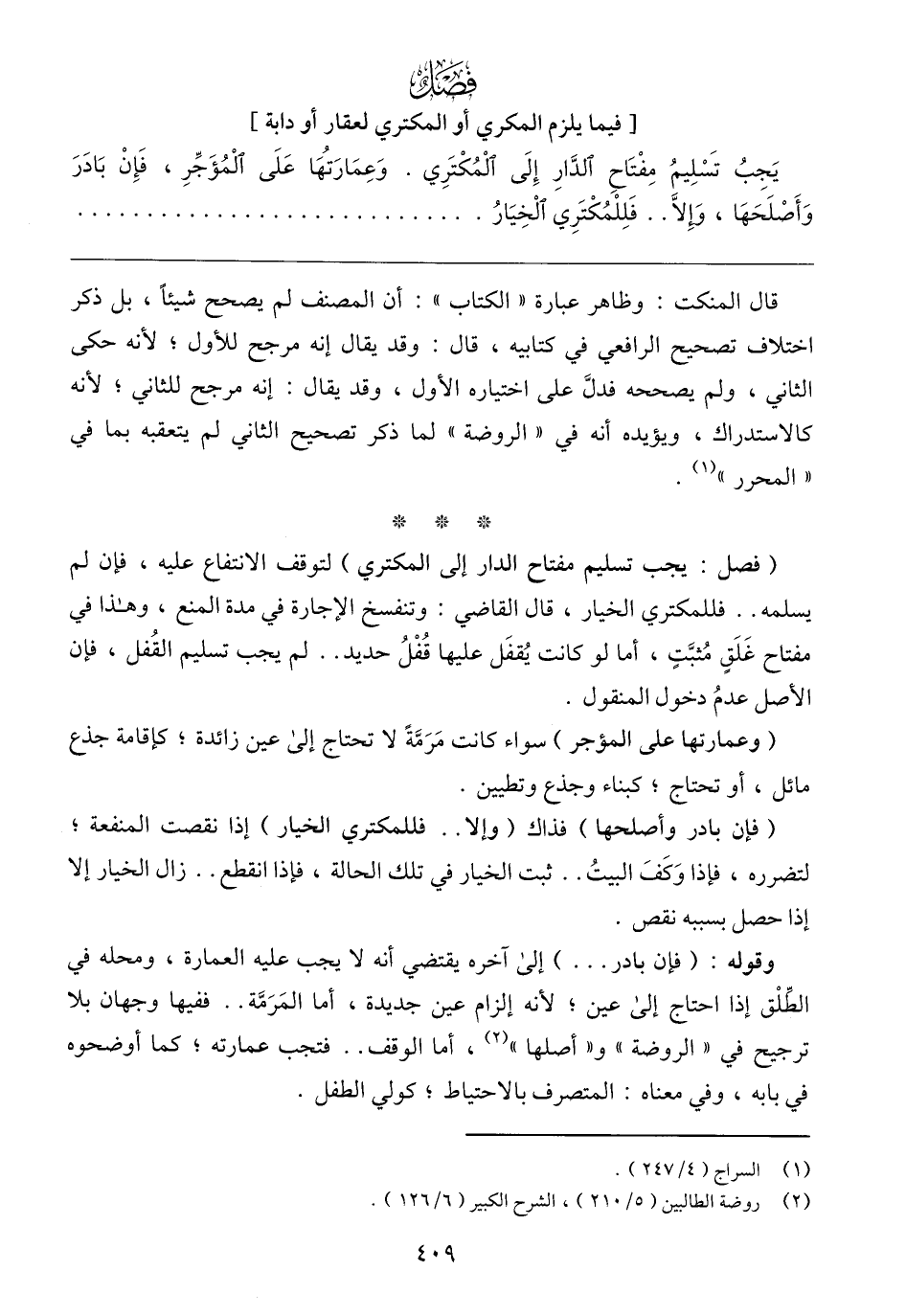 (٢) روضة الطالبين (٥/ ٢١٠)، الشرح الكبير (٦/ ١٢٦).