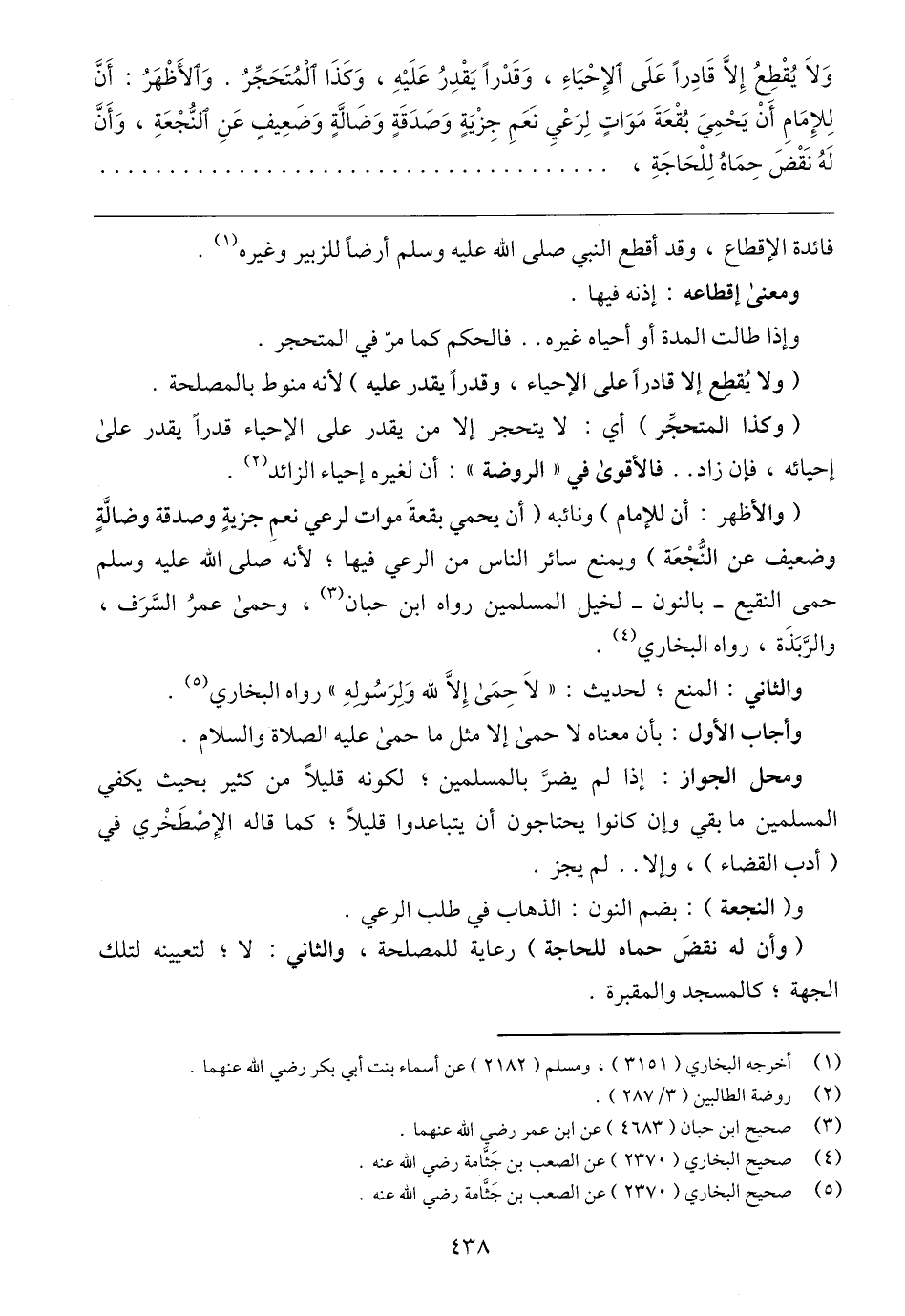 والثاني: المنع؛ لحديث: "لَا حِمَى إِلَّا لله وَلِرَسُولهِ" رواه البخاري (٥).