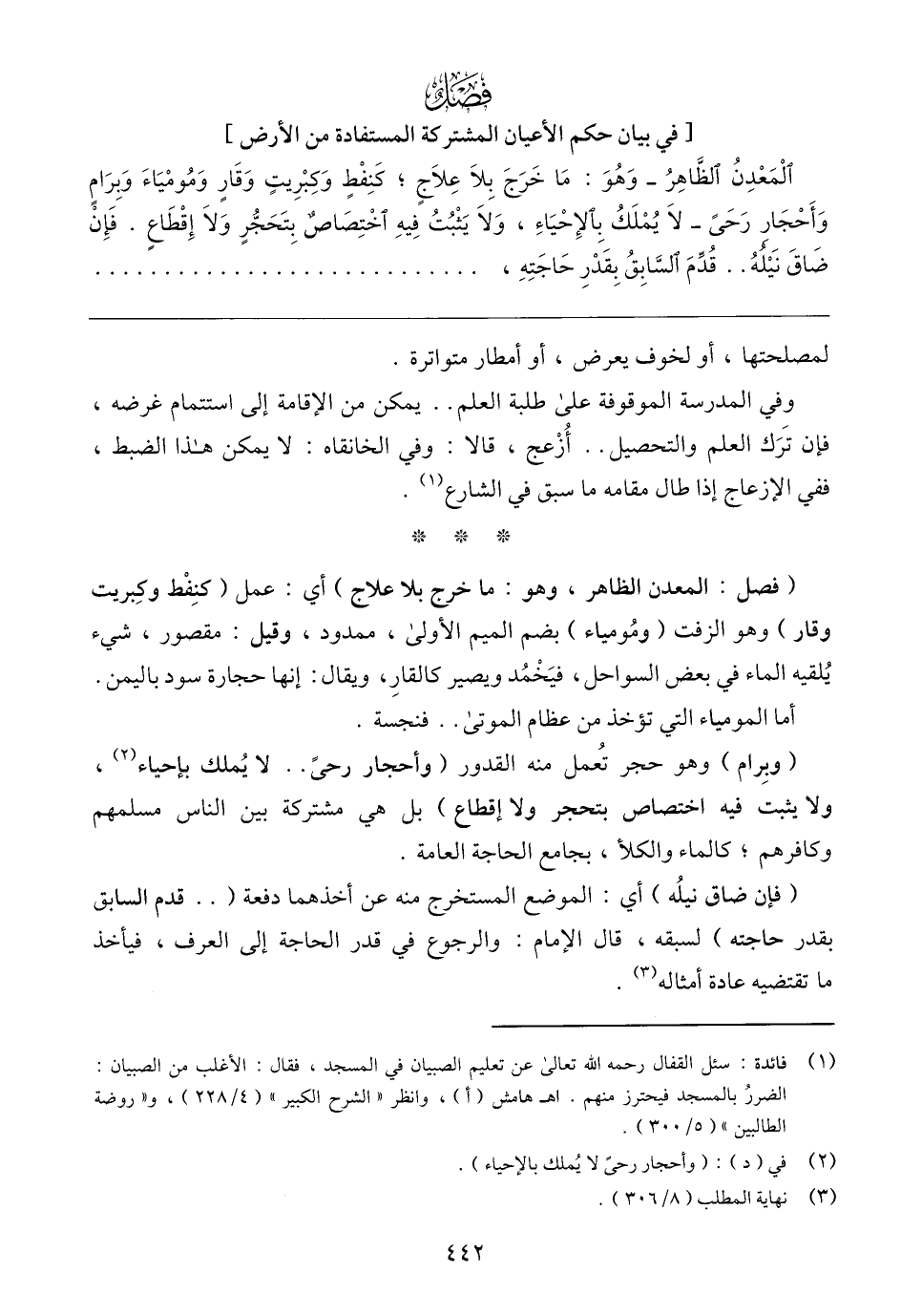(وبِرام) وهو حجر تُعمل منه القدور (وأحجار رحىً. . لا يُملك بإحياء (٢)، ولا يثبت فيه اختصاص بتحجر ولا إقطاع) بل هي مشتركة بين الناس مسلمهم وكافرهم؛ كالماء والكلأ، بجامع الحاجة العامة.