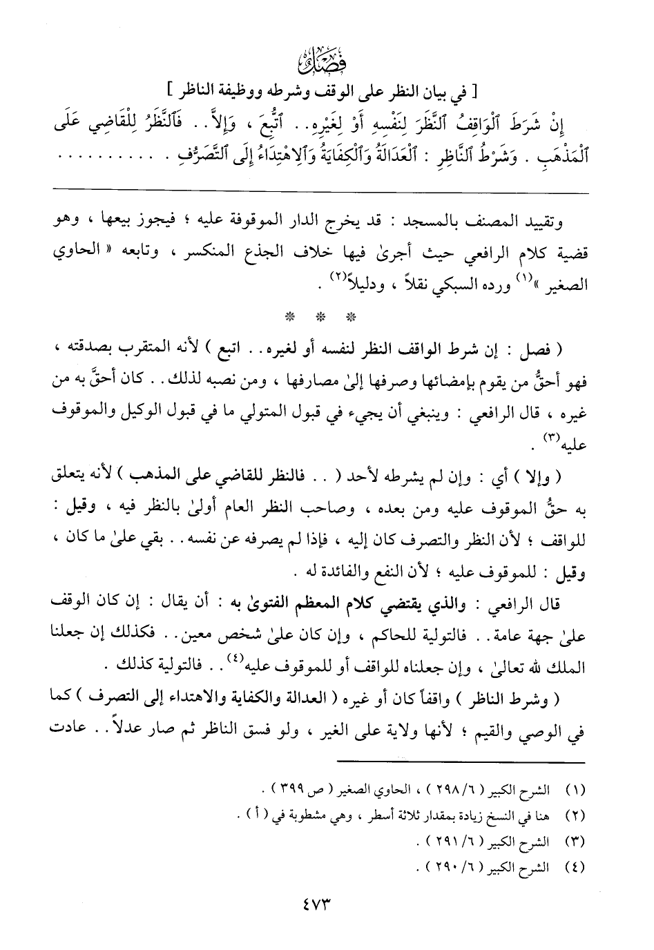 (١) الشرح الكبير (٦/ ٢٩٨)، الحاوي الصغير (ص ٣٩٩).