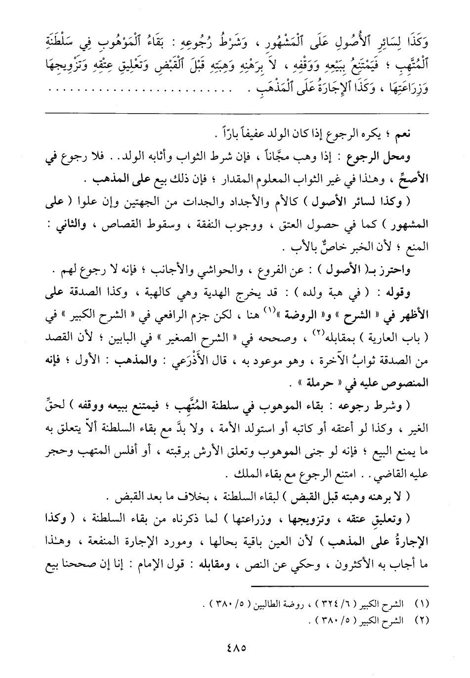 (١) الشرح الكبير (٦/ ٣٢٤)، روضة الطالبين (٥/ ٣٨٠).