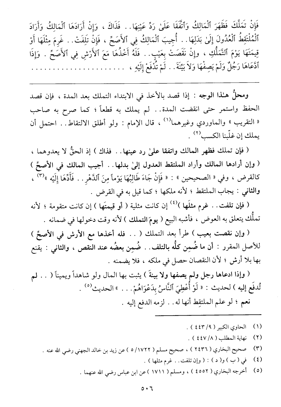(فإن تملك فظهر المالك واتفقا على رد عينها .. فذاك) إذ الحقُّ لا يعدوهما، (وإن أرادها المالك وأراد الملتقط العدول إلى بدلها .. أجيب المالك في الأصحّ) كالقرض، وفي "الصحيحين": "فَإِنْ جَاءَ طَالِبُهَا يَوْمًا مِنَ الدَّهْرِ .. فَأَدِّهَا إِلَيْه" (٣)، والثاني: يجاب الملتقط؛ لأنه ملكها؛ كما قيل به في القرض.