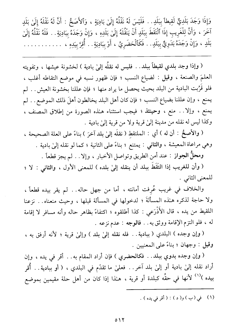 (وإن وجده بدوي ببلد .. فكالحضري) فإن أراد المقام به .. أقر في يده، وإن أراد نقله إلى بادية أو إلى بلد آخر .. فعلى ما تقدّم في البلدي، (أو ببادية .. أُقر بيده) (١) لأنها في حقِّه كبلدة أو قرية، هذا إذا كان من أهل حلة مقيمين بموضع