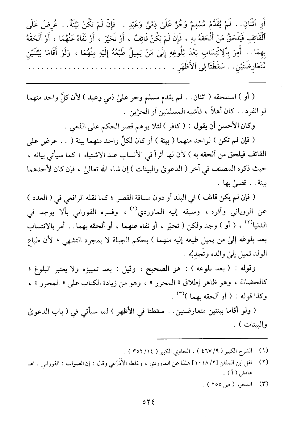 (أو) استلحقه (اثنان .. لم يقدم مسلم وحر على ذمي وعبد) لأن كلَّ واحد منهما لو انفرد .. كان أهلًا، فأشبه المسلمَين أو الحرَّين.