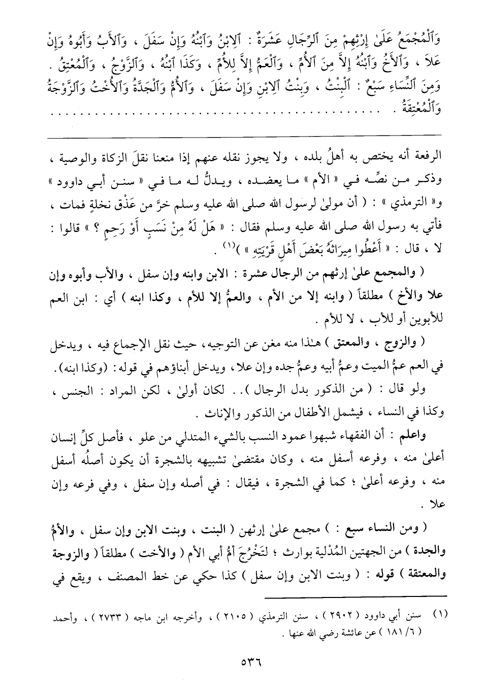 واعلم: أن الفقهاء شبهوا عمود النسب بالشيء المتدلي من علو، فأصل كلِّ إنسان أعلى منه، وفرعه أسفل منه، وكان مقتضى تشبيهه بالشجرة أن يكون أصلُه أسفل منه، وفرعه أعلى؛ كما في الشجرة، فيقال: في أصله وإن سفل، وفي فرعه وإن علا.