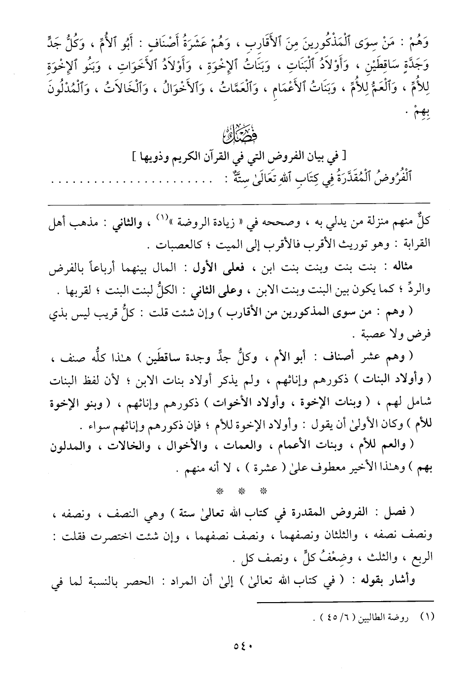 الْفُرُوضُ الْمُقَدَّرَةُ فِي كِتَابِ اللهِ تَعَالَى سِتَّةٌ: