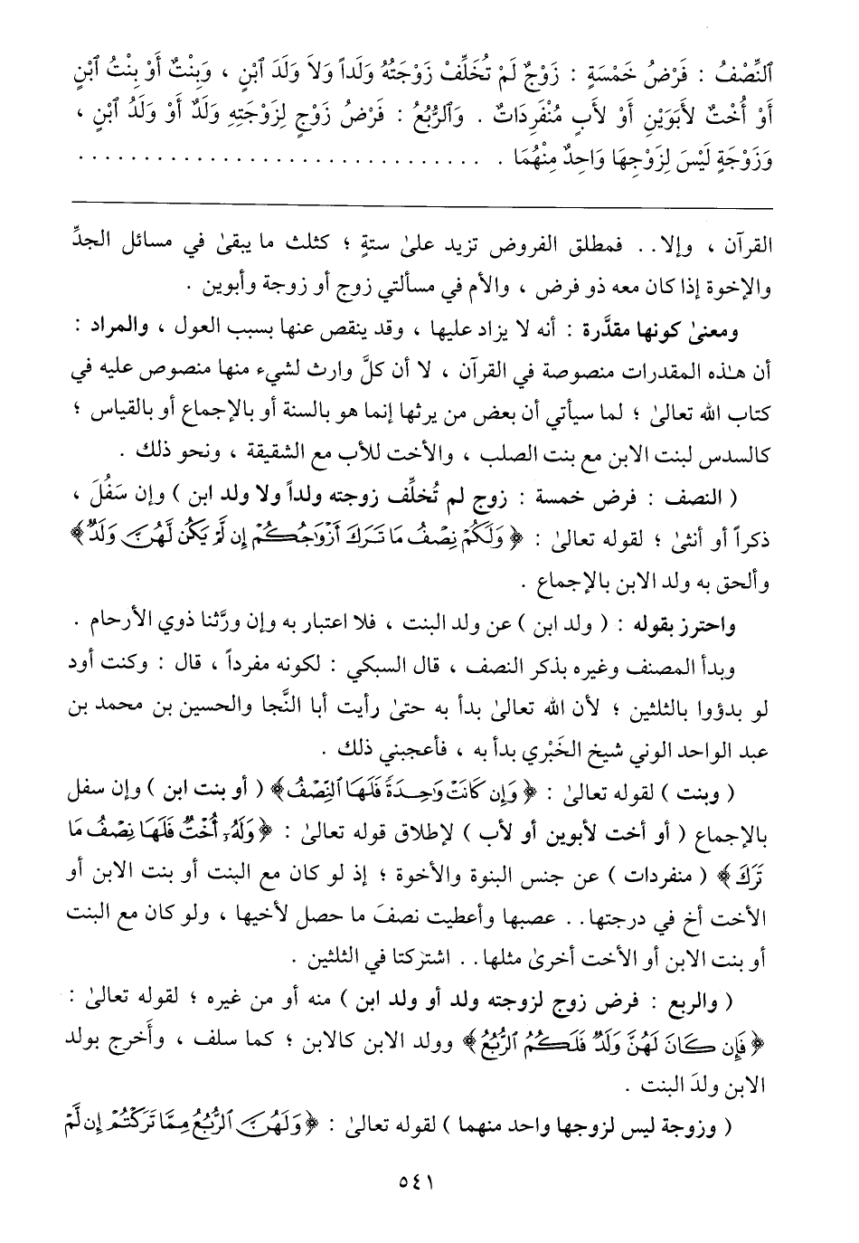 ومعنى كونها مقدَّرة: أنه لا يزاد عليها، وقد ينقص عنها بسبب العول، والمراد: أن هذه المقدرات منصوصة في القرآن، لا أن كلَّ وارث لشيء منها منصوص عليه في كتاب الله تعالى؛ لما سيأتي أن بعض من يرثها إنما هو بالسنة أو بالإجماع أو بالقياس؛ كالسدس لبنت الابن مع بنت الصلب، والأخت للأب مع الشقيقة، ونحو ذلك.
