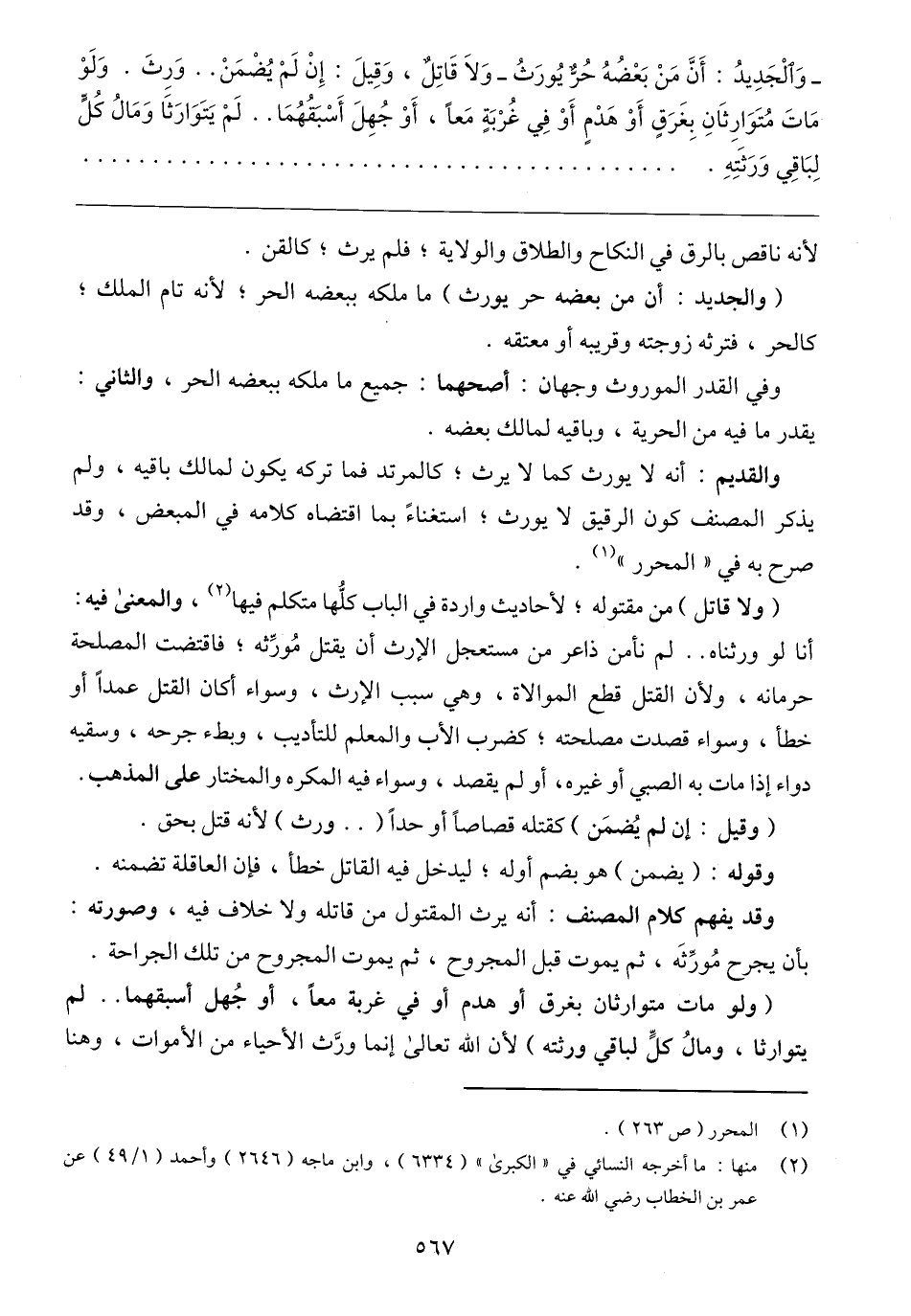 (وقيل: إن لم يُضمَن) كقتله قصاصًا أو حدًّا ( .. ورث) لأنه قتل بحق.