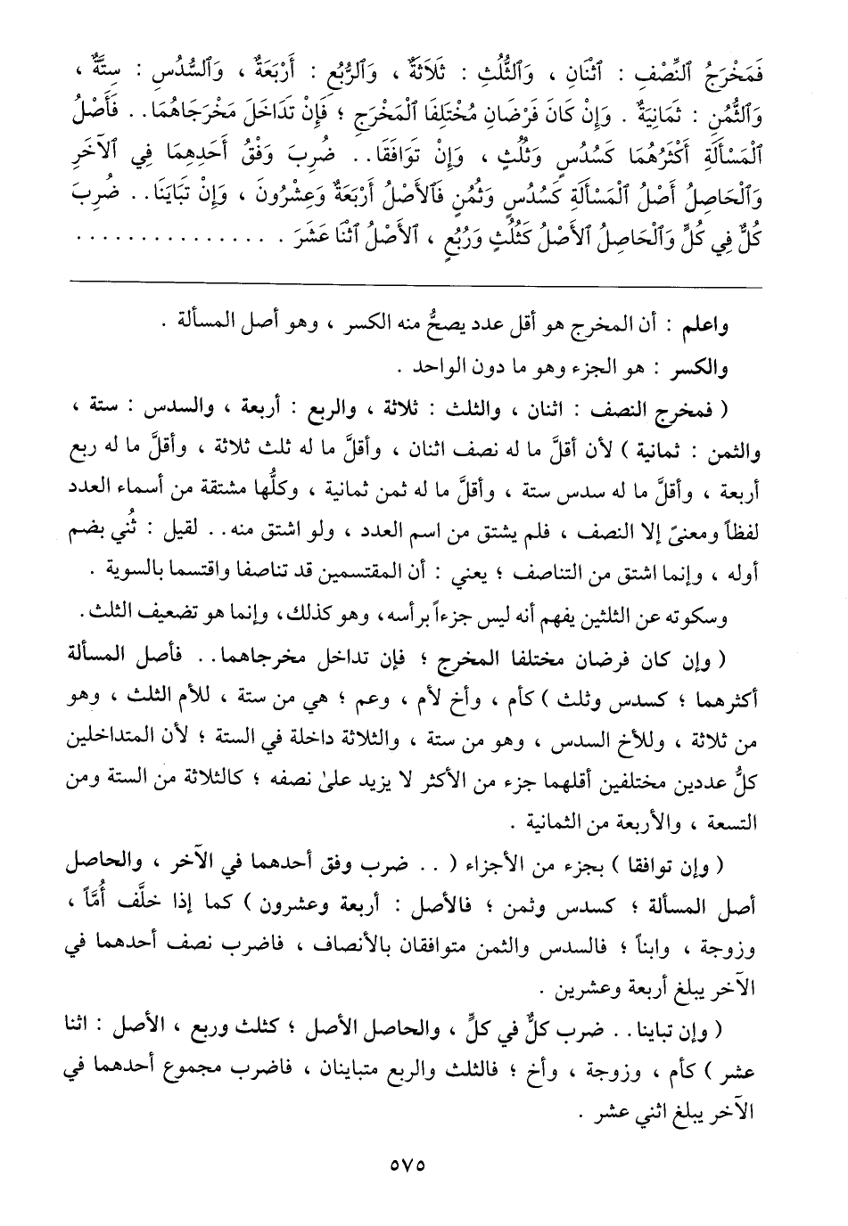 واعلم: أن المخرج هو أقل عدد يصحُّ منه الكسر، وهو أصل المسألة.