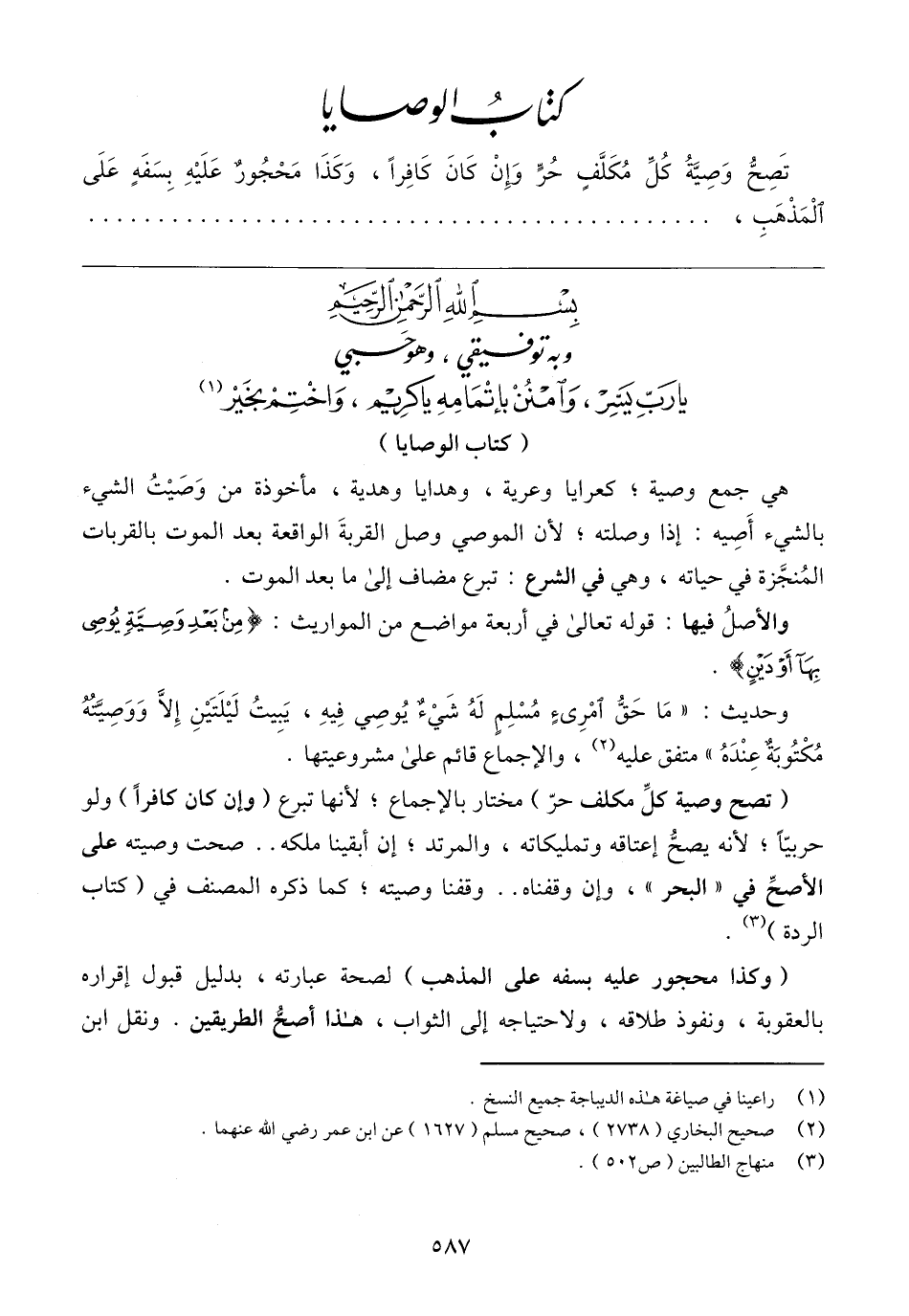(٣) منهاج الطالبين (ص ٥٠٢).