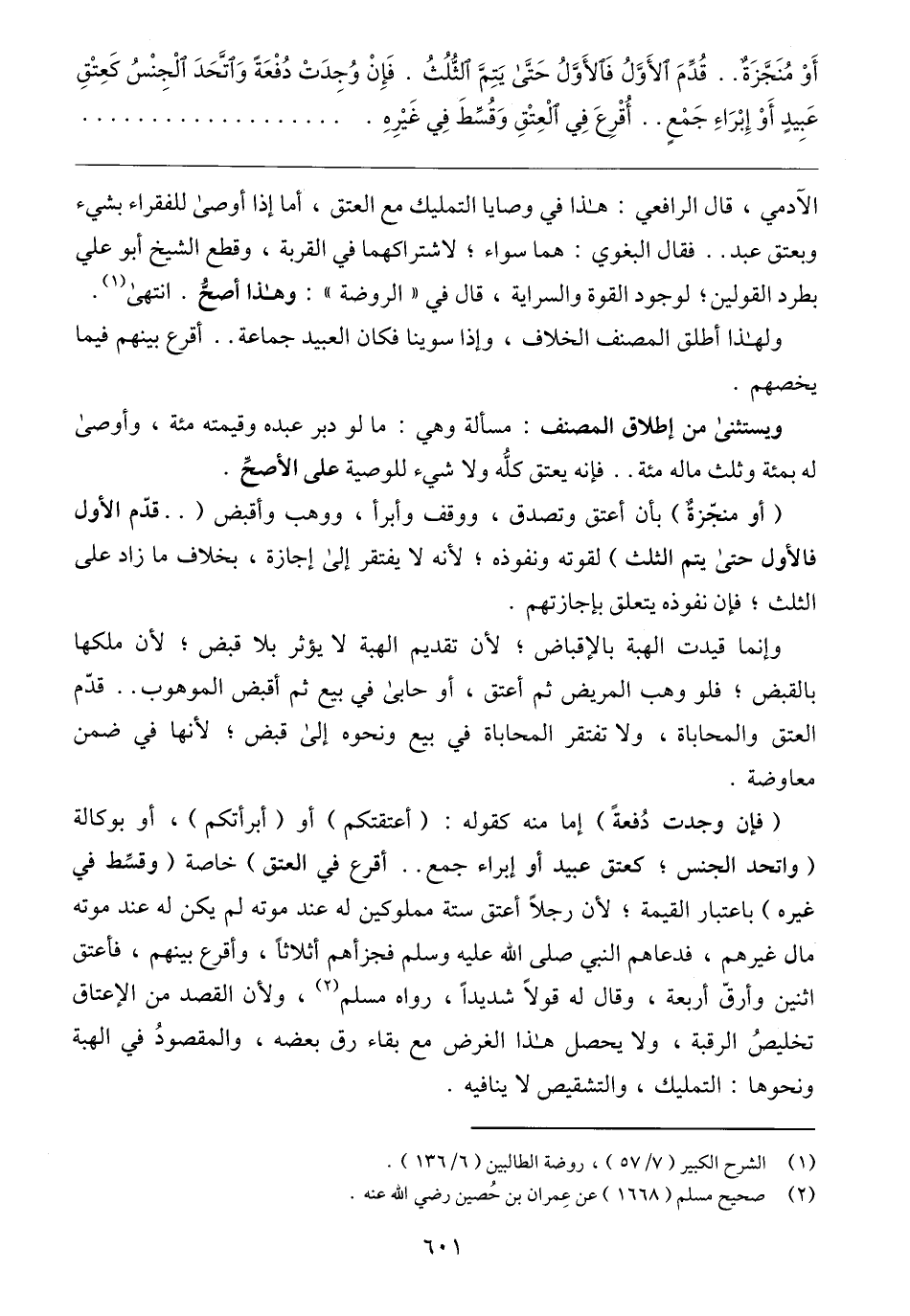 (١) الشرح الكبير (٧/ ٥٧)، روضة الطالبين (٦/ ١٣٦).
