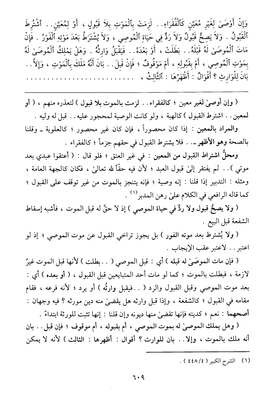 ومحلُّ اشتراط القبول من المعين: في غير العتق؛ فلو قال: (أعتقوا عبدي بعد موتي) .. لم يفتقر إلى قبول العبد؛ لأن فيه حقًّا لله تعالى، فكان كالجهة العامة، ومثله: التدبير إذا قلنا: إنه وصية؛ فإنه يتنجز بالموت من غير توقف على القبول؛ كما قاله الرافعي في الكلام على رهن المدبر (١).