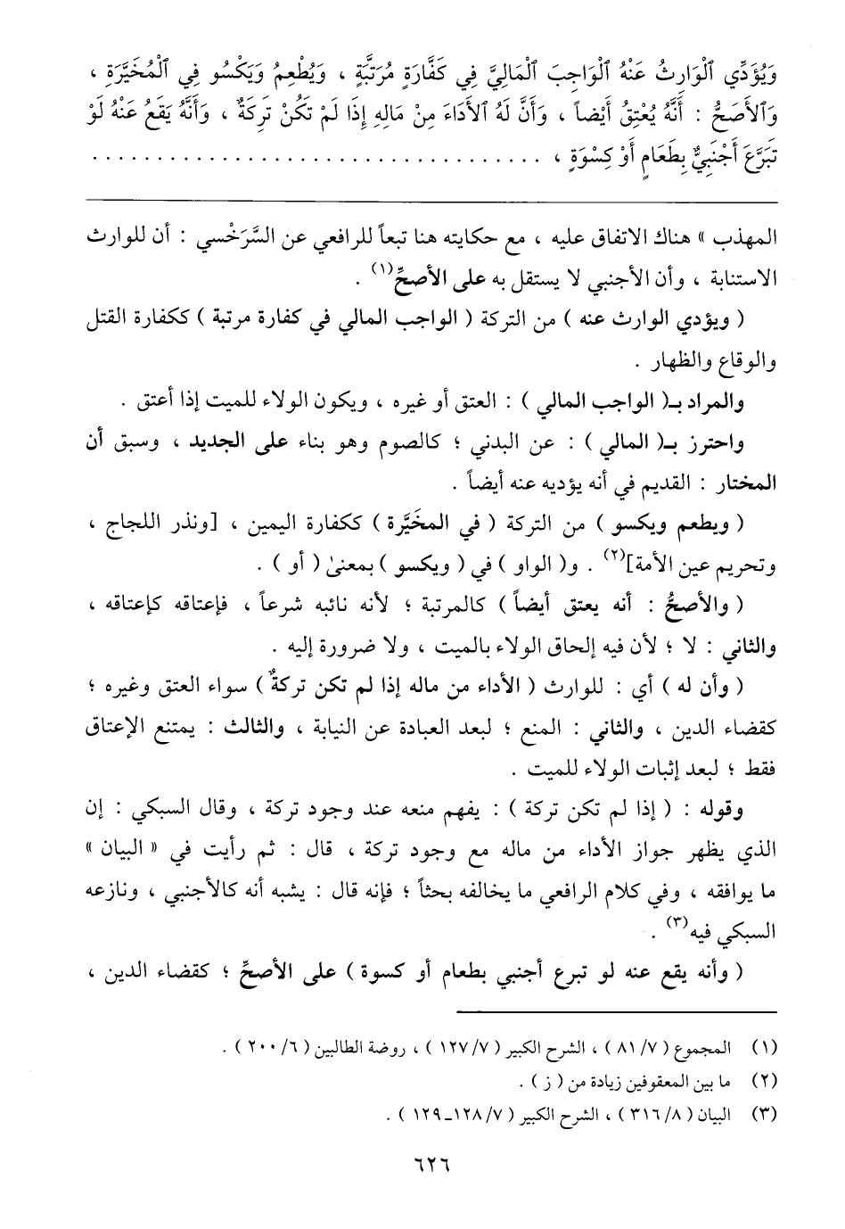 (٣) البيان (٨/ ٣١٦)، الشرح الكبير (٧/ ١٢٨ - ١٢٩).