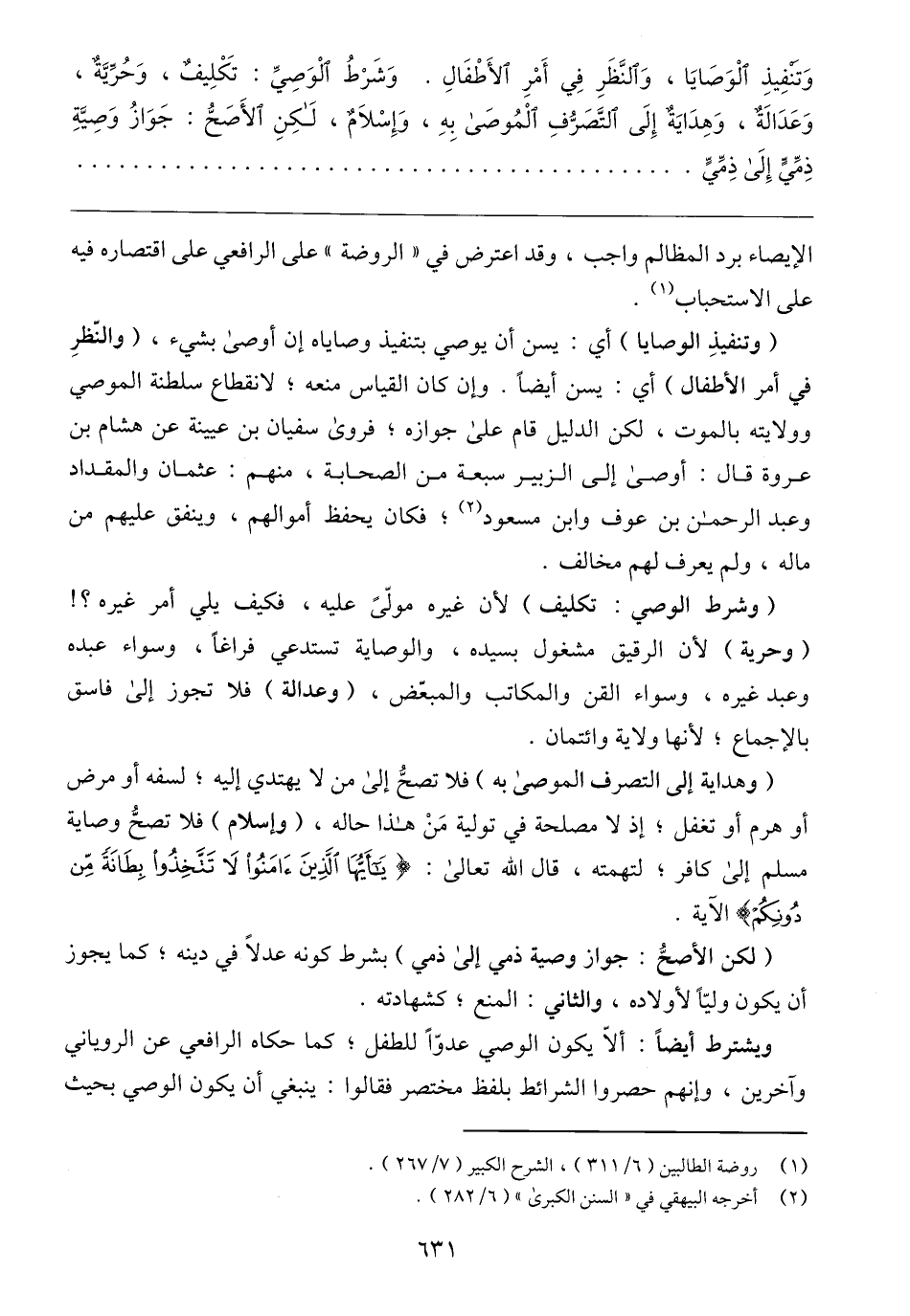 (١) روضة الطالبين (٦/ ٣١١)، الشرح الكبير (٧/ ٢٦٧).