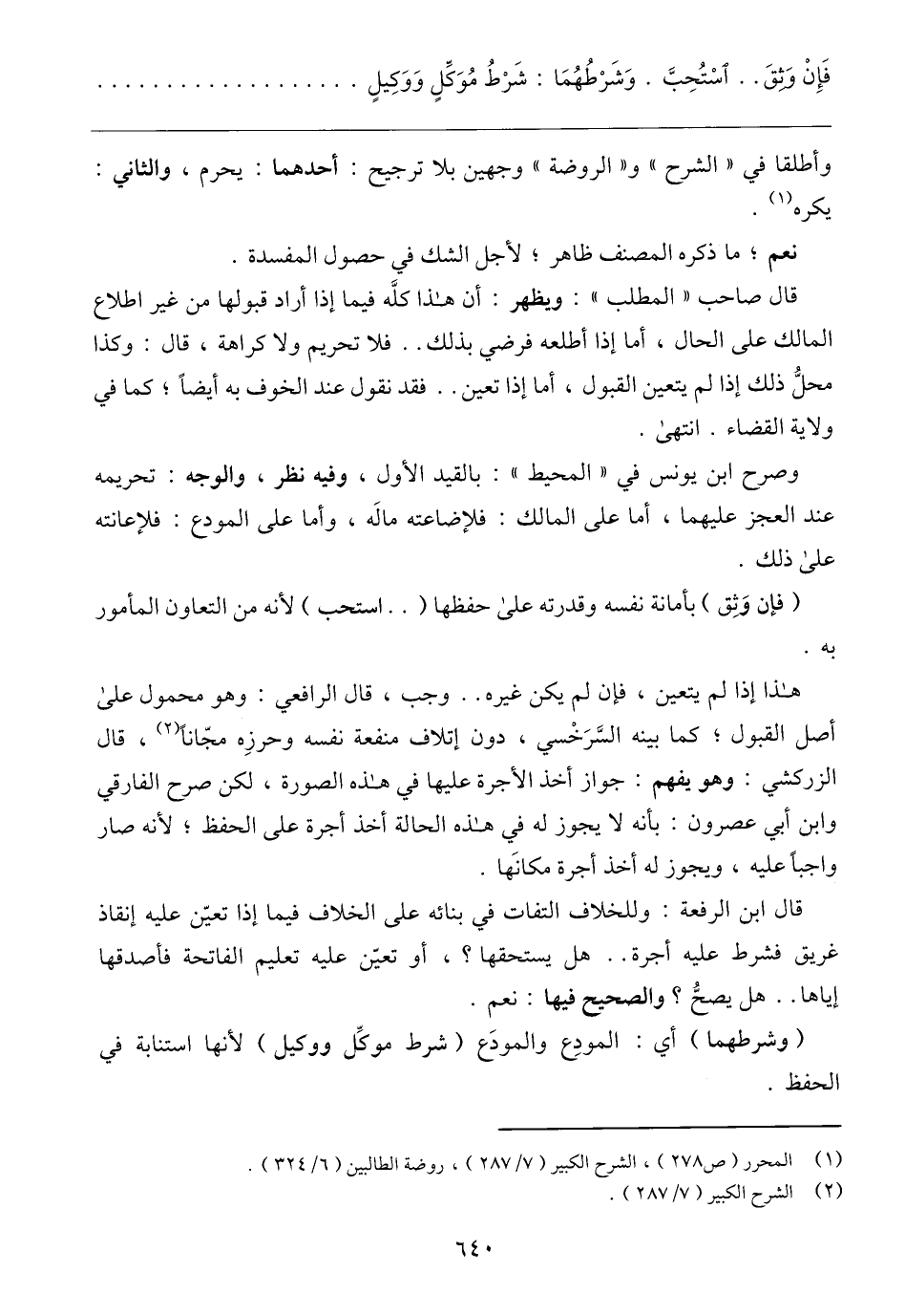 (١) المحرر (ص ٢٧٨)، الشرح الكبير (٧/ ٢٨٧)، روضة الطالبين (٦/ ٣٢٤).