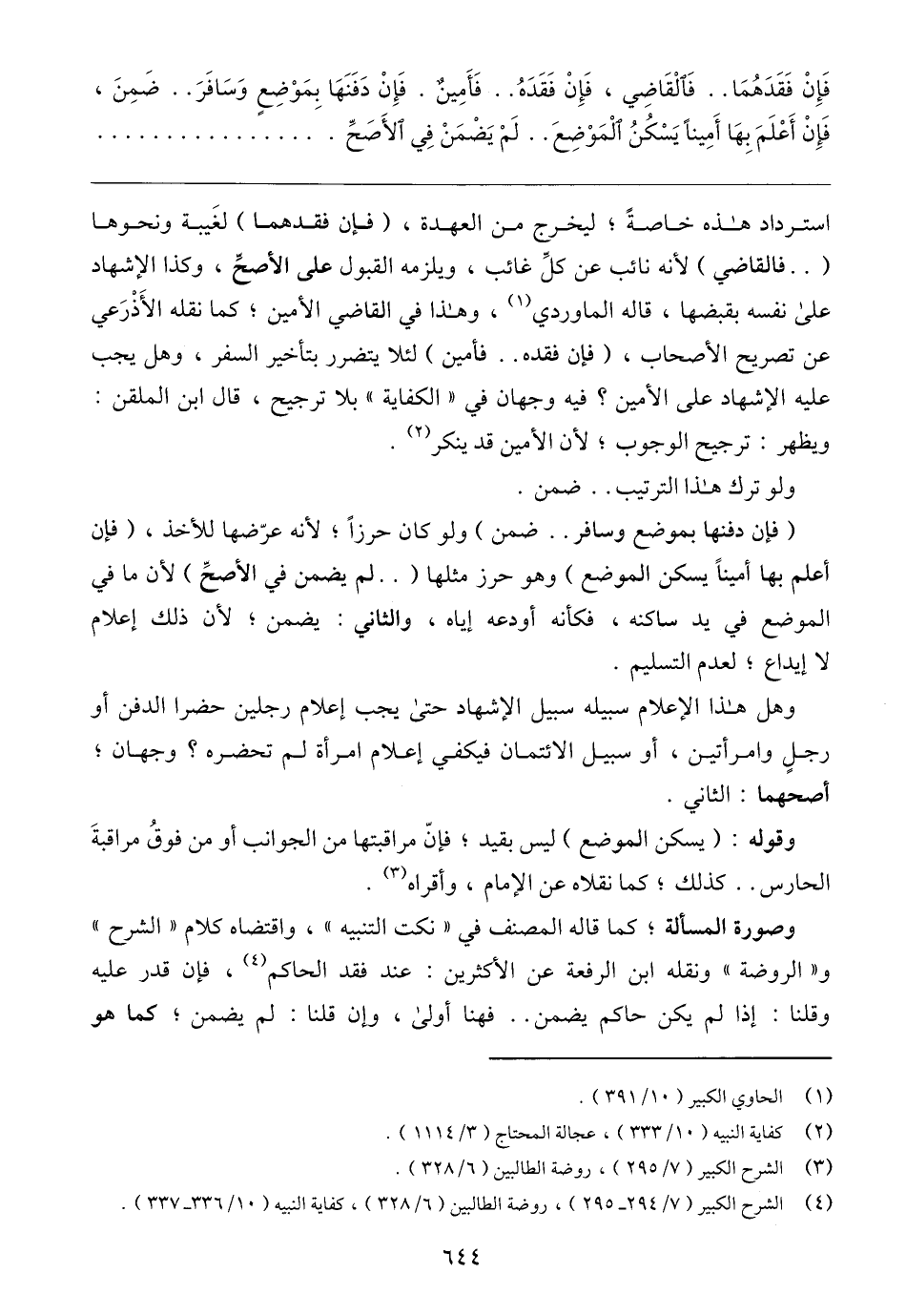 (٤) الشرح الكبير (٧/ ٢٩٤ - ٢٩٥)، روضة الطالبين (٦/ ٣٢٨)، كفاية النبيه (١٠/ ٣٣٦ - ٣٧٧).