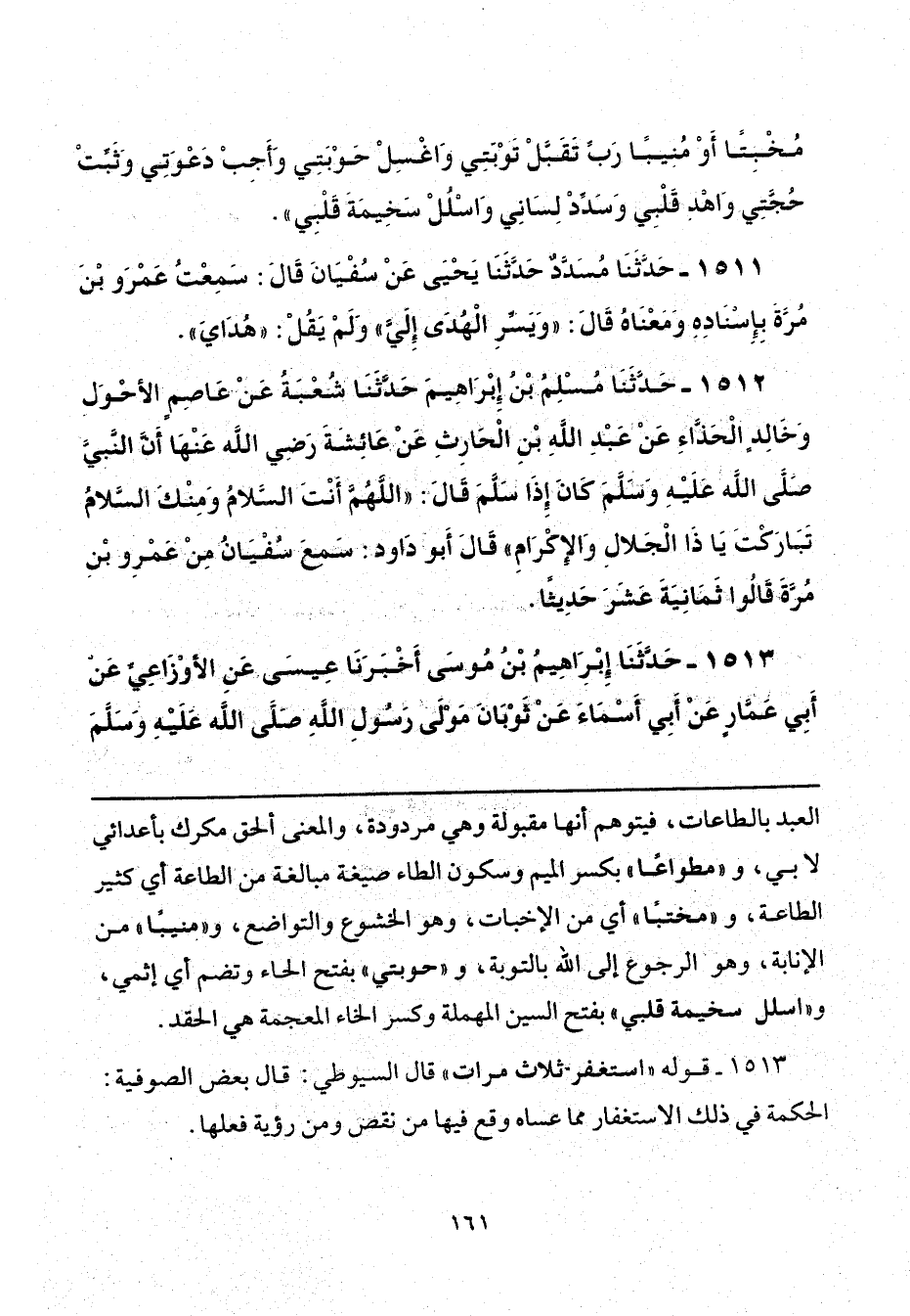 1513 - قوله "استغفر ثلاث مرات" قال السيوطي: قال بعض الصوفية: الحكمة في ذلك الاستغفار مما عساه وقع فيها من نقص ومن رؤية فعلها.