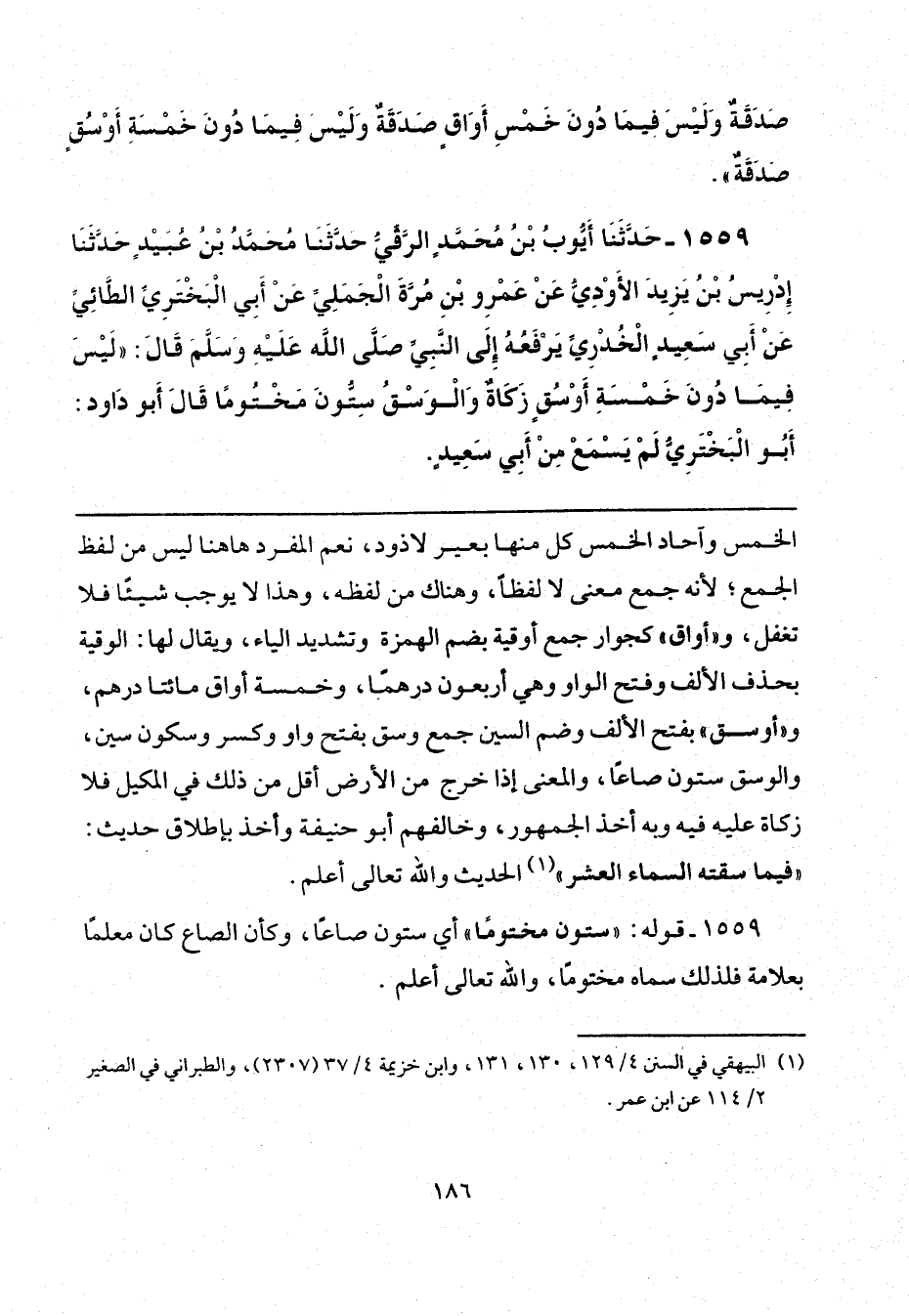 1559 - حَدَّثَنَا أَيُّوبُ بْنُ مُحَمَّدٍ الرَّقِّيُّ، حَدَّثَنَا مُحَمَّدُ بْنُ عُبَيْدٍ، حَدَّثَنَا إِدْرِيسُ بْنُ يَزِيدَ الْأَوْدِيُّ، عَنْ عَمْرِو بْنِ مُرَّةَ الْجَمَلِيِّ، عَنْ أَبِي الْبَخْتَرِيِّ الطَّائِيِّ، عَنْ أَبِي سَعِيدٍ الْخُدْرِيِّ، يَرْفَعُهُ إِلَى النَّبِيِّ صَلَّى اللهُ عَلَيْهِ وَسَلَّمَ قَالَ: " لَيْسَ فِيمَا دُونَ خَمْسَةِ أَوْسُقٍ زَكَاةٌ، وَالْوَسْقُ: سِتُّونَ مَخْتُومًا "، قَالَ أَبُو دَاوُدَ: «أَبُو الْبَخْتَرِيُّ لَمْ يَسْمَعْ مِنْ أَبِي سَعِيدٍ».