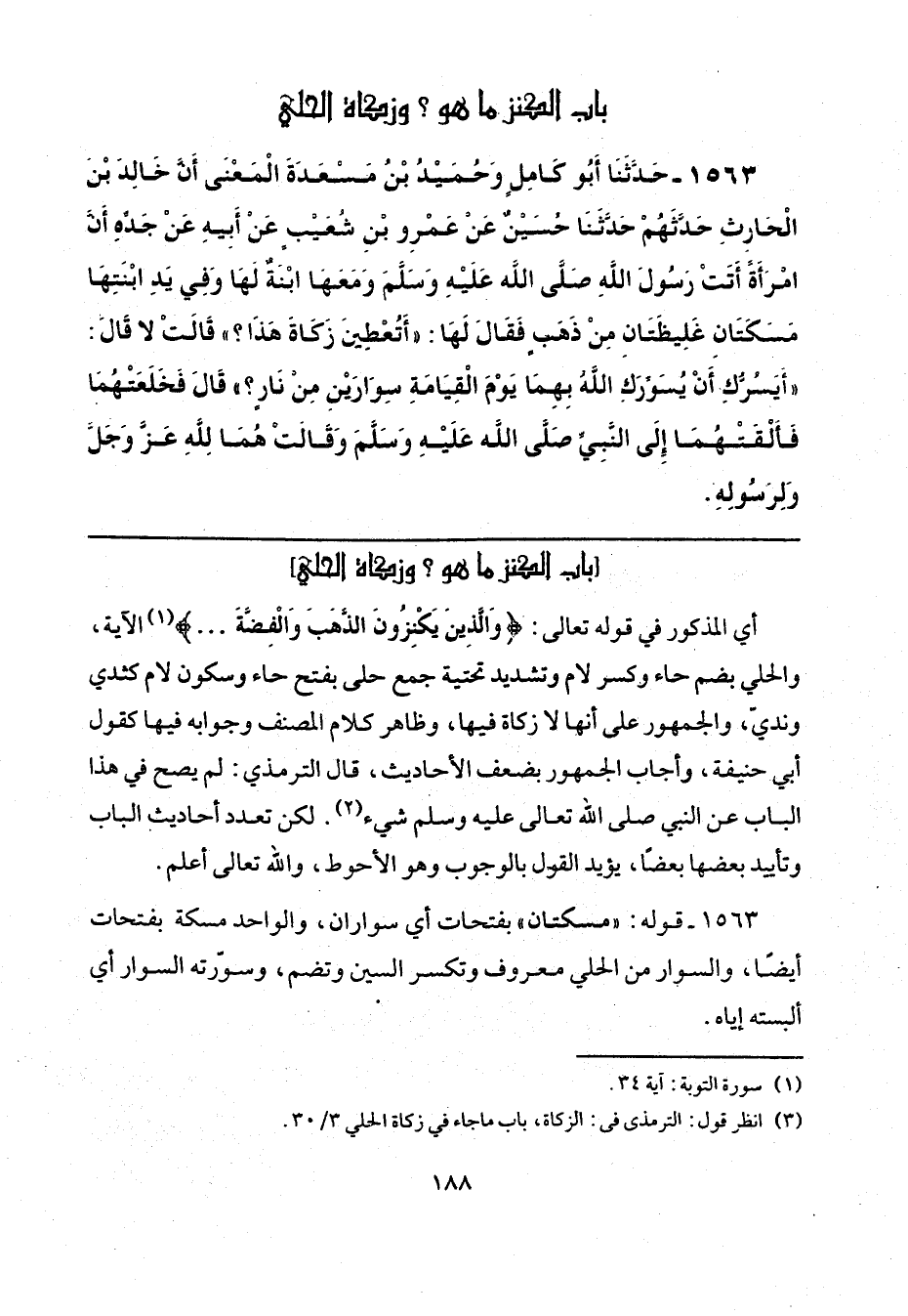 (¬2) انظر قول: الترمذي في: الزكاة، باب ما جاء في زكاة الحلي 3/ 30.