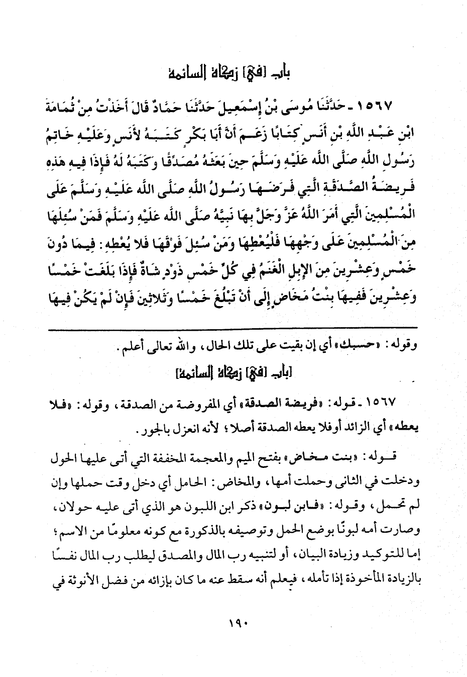 قوله: "بن مخاض" بفتح الميم والمعجمة المخففة التي أتى عليها الحول ودخلت في الثاني وحملت أمها، والمخاض: الحامل أي دخل وقت حملها وإن لم تحمل، وقوله: "فابن لبون" ذكر ابن اللبون هو الذي أتى عليه حولان، وصارت أمه لبونًا بوضع الحمل وتوصيفه بالذكورة مع كونه معلومًا من الاسم؛ إما للتوكيد وزيادة البيان، أو لتنبيه رب المال والمصدق ليطلب رب المال نفسًا بالزيادة المأخوذة إذا تأمله، فيعلم أنه سقط عنه ما كان بإزائه من فضل الأنوثة في