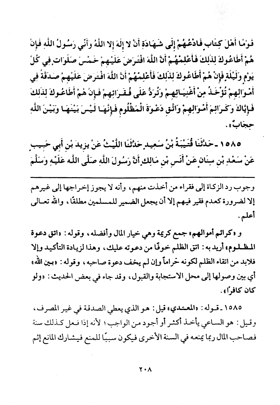 1585 - حَدَّثَنَا قُتَيْبَةُ بْنُ سَعِيدٍ، حَدَّثَنَا اللَّيْثُ، عَنْ يَزِيدَ بْنِ أَبِي حَبِيبٍ، عَنْ سَعْدِ بْنِ سِنَانٍ، عَنْ أَنَسِ بْنِ مَالِكٍ، أَنَّ رَسُولَ اللَّهِ صَلَّى اللهُ عَلَيْهِ وَسَلَّمَ