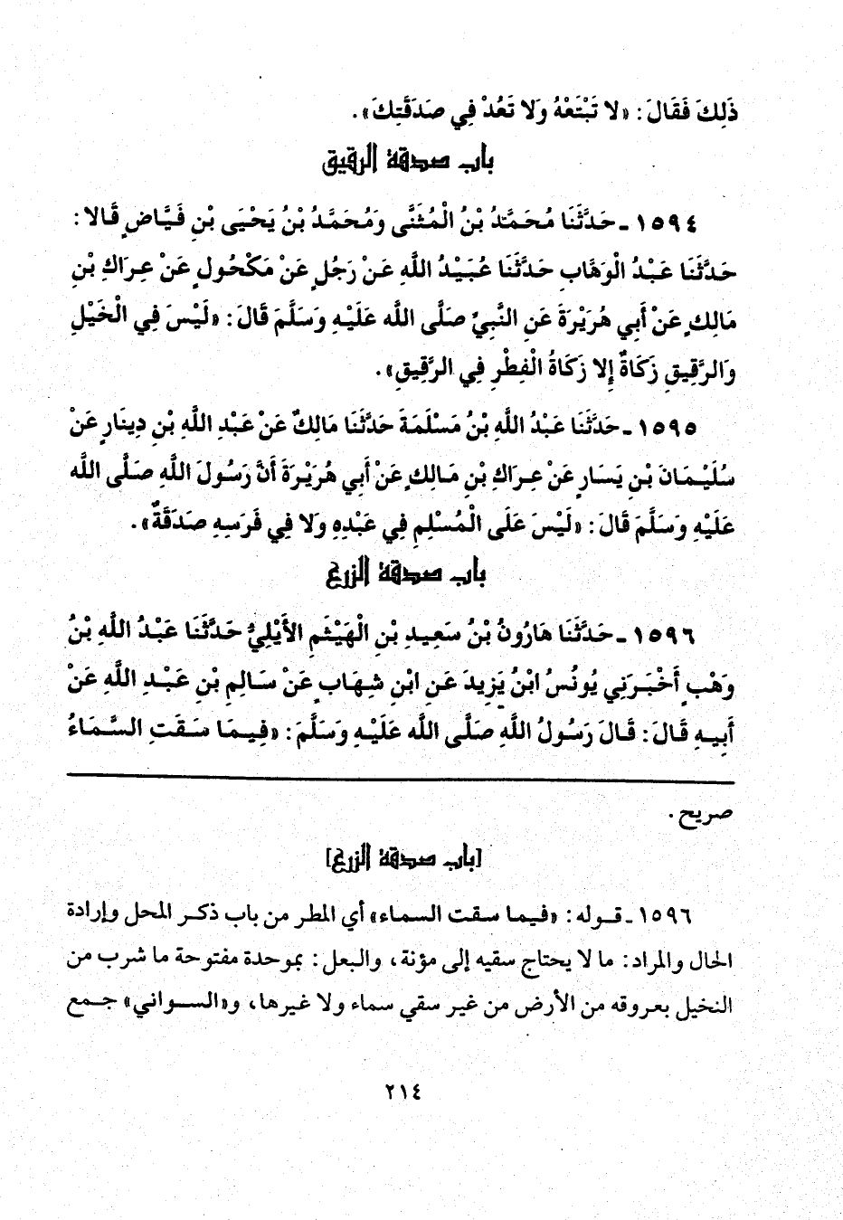 1596 - حَدَّثَنَا هَارُونُ بْنُ سَعِيدِ بْنِ الْهَيْثَمِ الْأَيْلِيُّ، حَدَّثَنَا عَبْدُ اللَّهِ بْنُ وَهْبٍ، أَخْبَرَنِي يُونُسُ بْنُ يَزِيدَ، عَنِ ابْنِ شِهَابٍ، عَنْ سَالِمِ بْنِ عَبْدِ اللَّهِ، عَنْ أَبِيهِ، قَالَ: قَالَ رَسُولُ اللَّهِ صَلَّى اللهُ عَلَيْهِ وَسَلَّمَ: «فِيمَا سَقَتِ السَّمَاءُ
