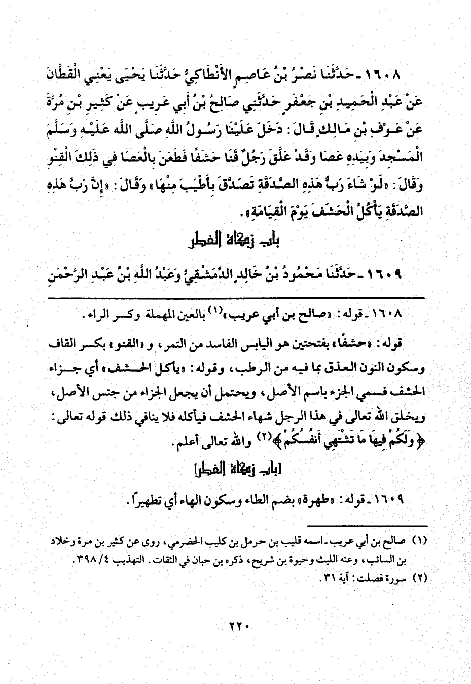 1608 - قوله: "صالح بن أبي عريب" (¬1) بالعين المهملة وكسر الراء.