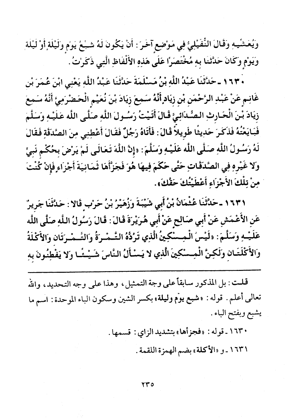 1631 - حَدَّثَنَا عُثْمَانُ بْنُ أَبِي شَيْبَةَ، وَزُهَيْرُ بْنُ حَرْبٍ، قَالَا: حَدَّثَنَا جَرِيرٌ، عَنِ الْأَعْمَشِ، عَنْ أَبِي صَالِحٍ، عَنْ أَبِي هُرَيْرَةَ، قَالَ: قَالَ رَسُولُ اللَّهِ صَلَّى اللهُ عَلَيْهِ وَسَلَّمَ: «لَيْسَ الْمِسْكِينُ الَّذِي تَرُدُّهُ التَّمْرَةُ وَالتَّمْرَتَانِ، وَالْأَكْلَةُ وَالْأَكْلَتَانِ، وَلَكِنَّ الْمِسْكِينَ الَّذِي لَا يَسْأَلُ النَّاسَ شَيْئًا، وَلَا يَفْطِنُونَ بِهِ.