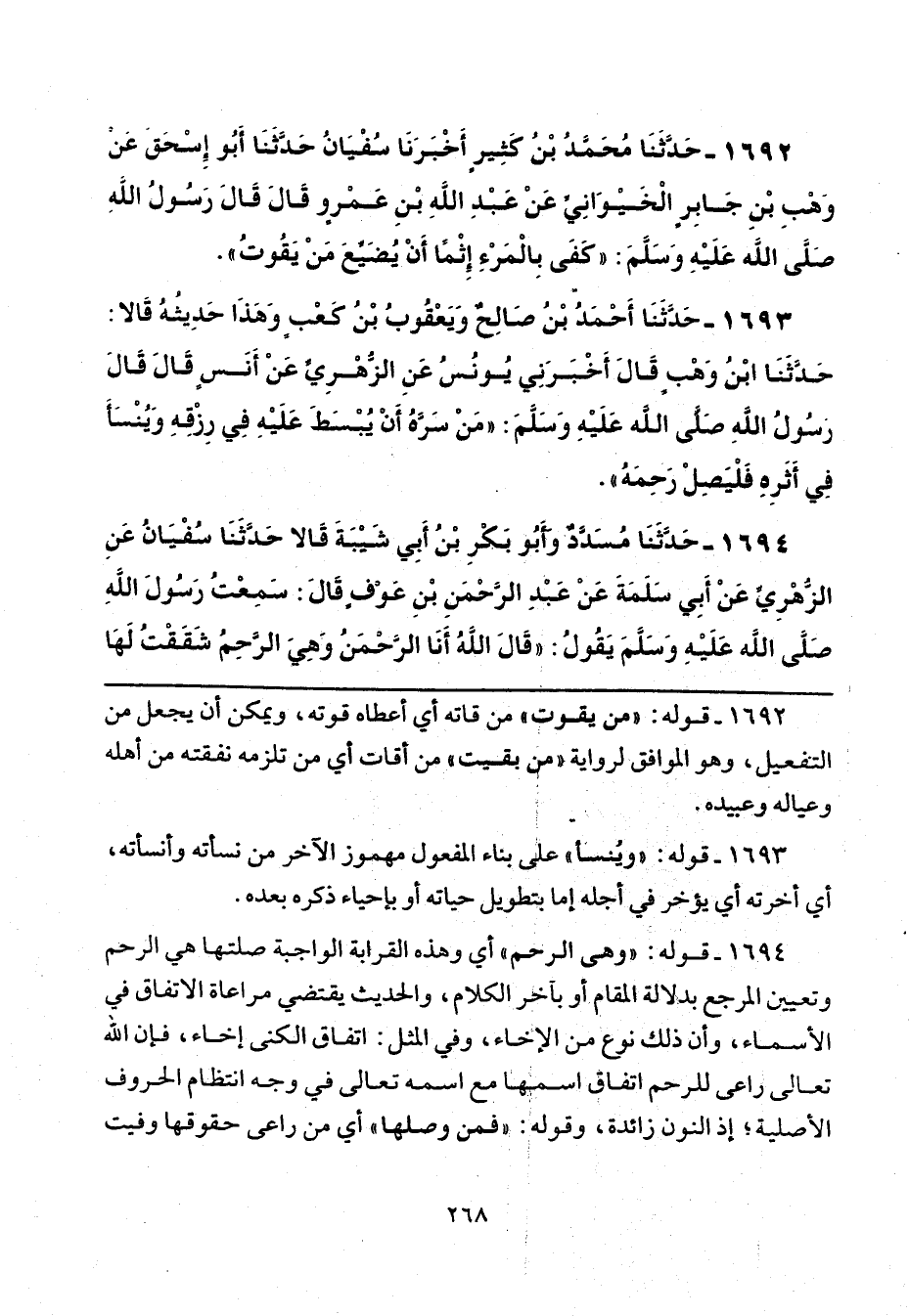 1694 - حَدَّثَنَا مُسَدَّدٌ، وَأَبُو بَكْرِ بْنُ أَبِي شَيْبَةَ، قَالَا: حَدَّثَنَا سُفْيَانُ، عَنِ الزُّهْرِيِّ، عَنْ أَبِي سَلَمَةَ، عَنْ عَبْدِ الرَّحْمَنِ بْنِ عَوْفٍ، قَالَ: سَمِعْتُ رَسُولَ اللَّهِ صَلَّى اللهُ عَلَيْهِ وَسَلَّمَ يَقُولُ: " قَالَ اللَّهُ: أَنَا الرَّحْمَنُ وَهِيَ الرَّحِمُ، شَقَقْتُ لَهَا